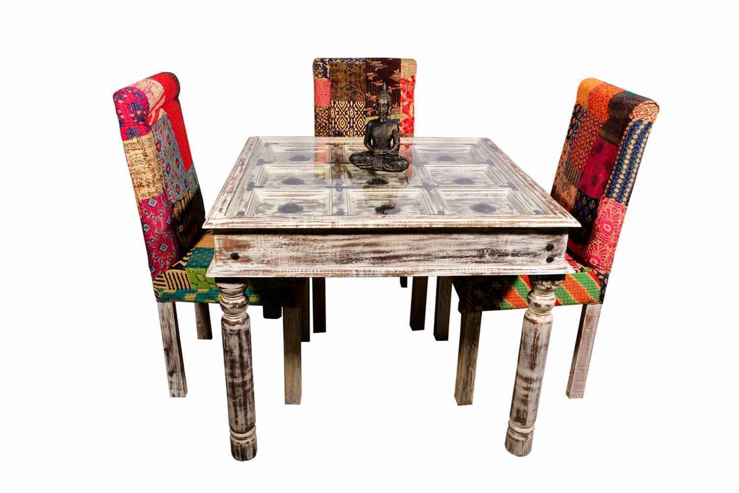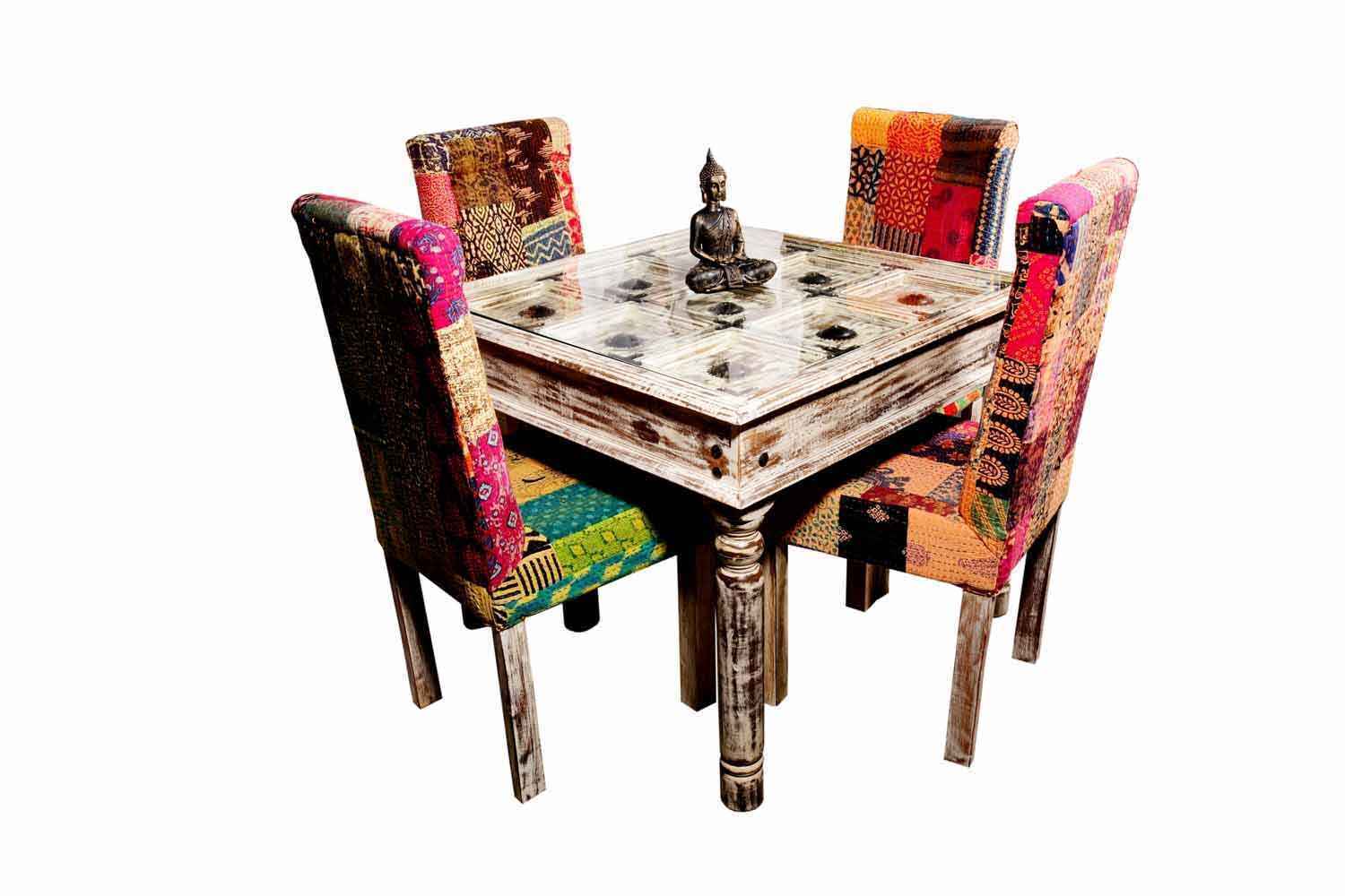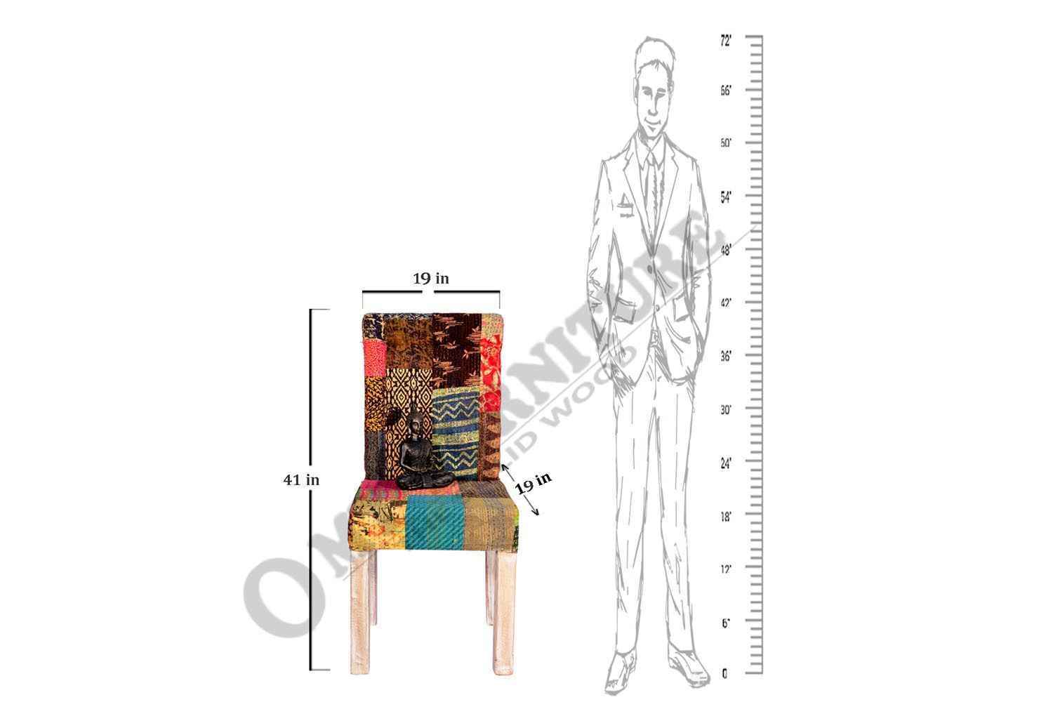 About Chair - About Chair - Garniture patch work chair is made by Mango wood with rustic finish and upholstery.We use recycle colorful upholstery to make this product comfortable and beautiful. It legs finish is rustic and back rest upper portion (head rest) is in round shape that make it beautiful in look. Its colour and design makes heritage look. You can buy best quality Solid wood furniture online from O my furniture.