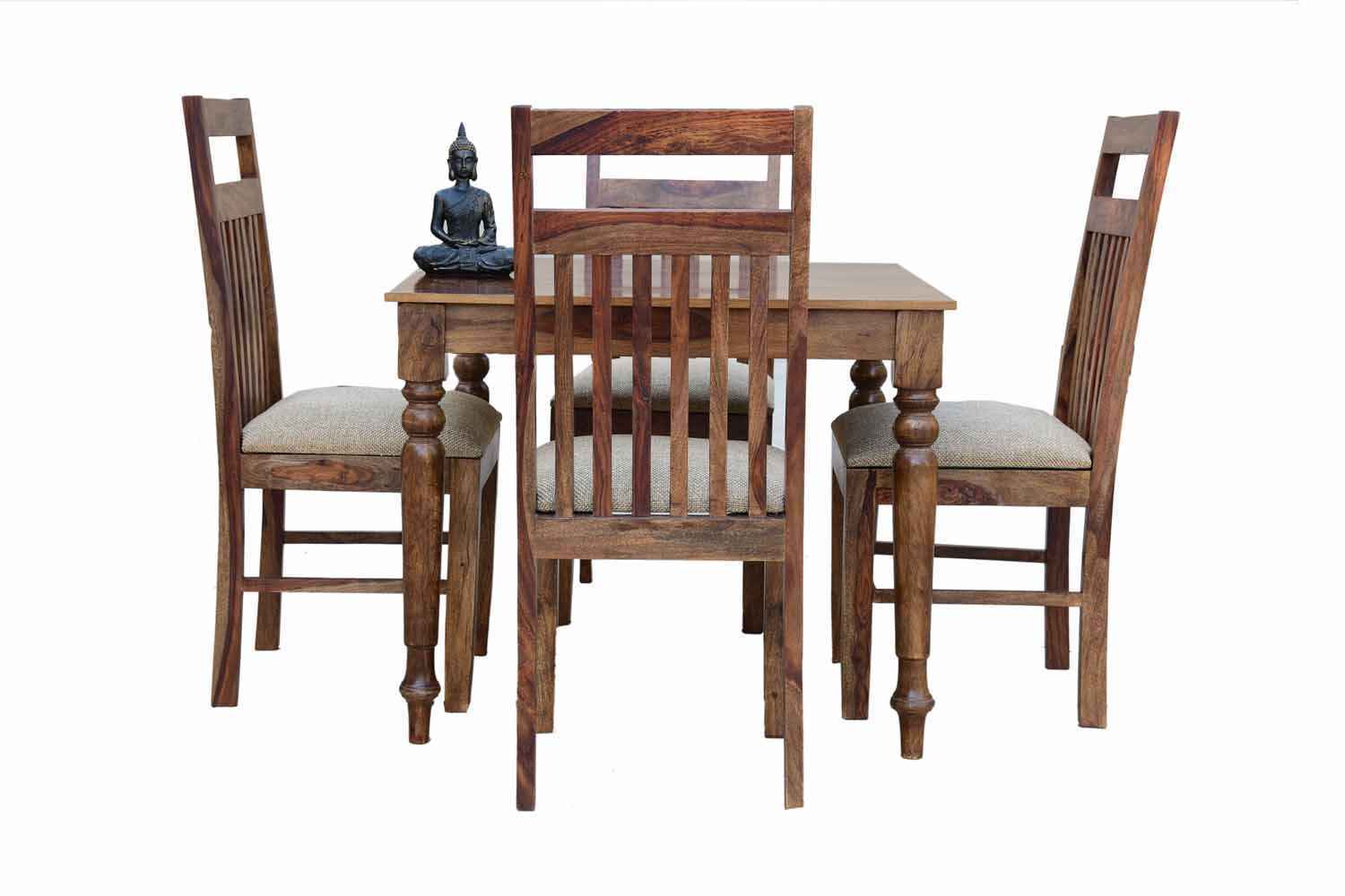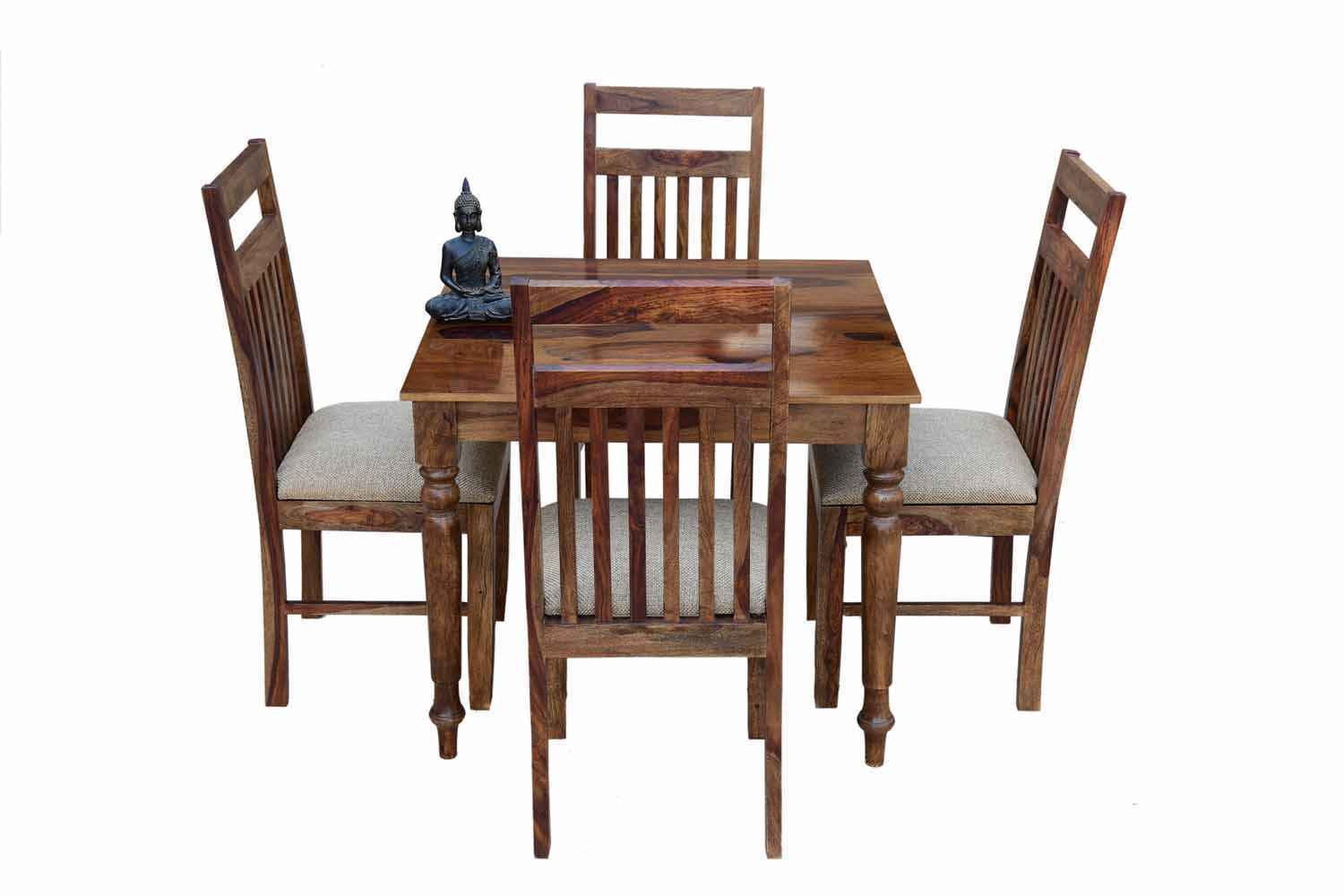 4 Seater Compact Square Dining Table set is made for small space area.It is a light weight and easy to move.It made by Sheesham (Rosewood) with Teak finish.It is a four seater dining table with simple square shape.This design mostly used in small space area as like as restaurants,hotels and small living areas.This dining table contain four Sheesham wood chair with teak finish.