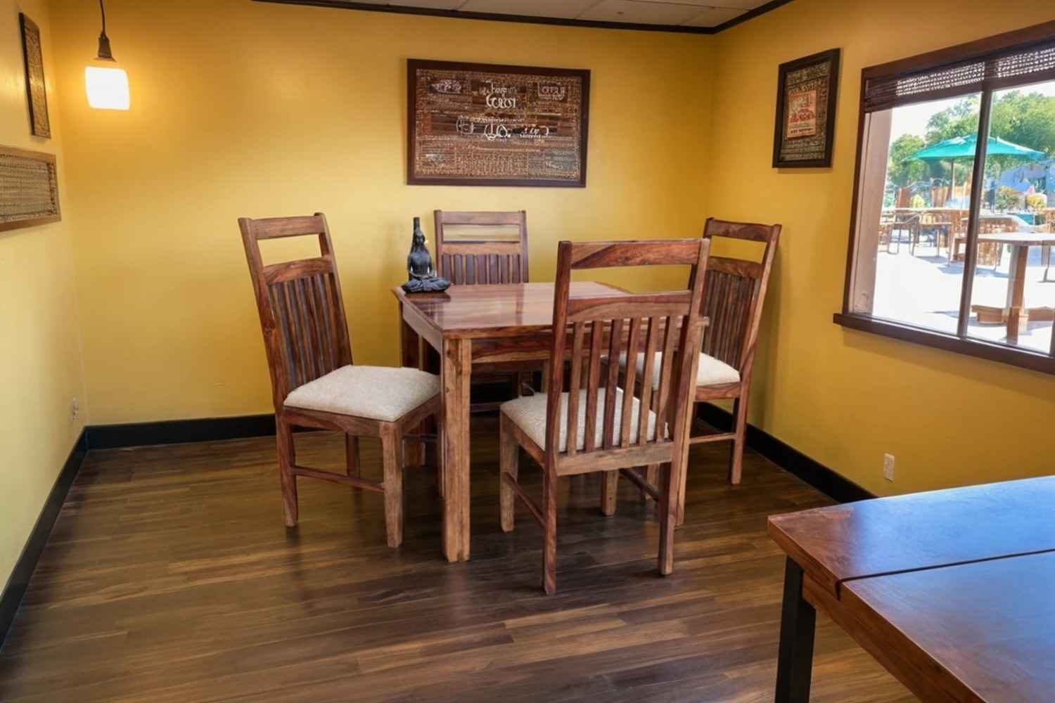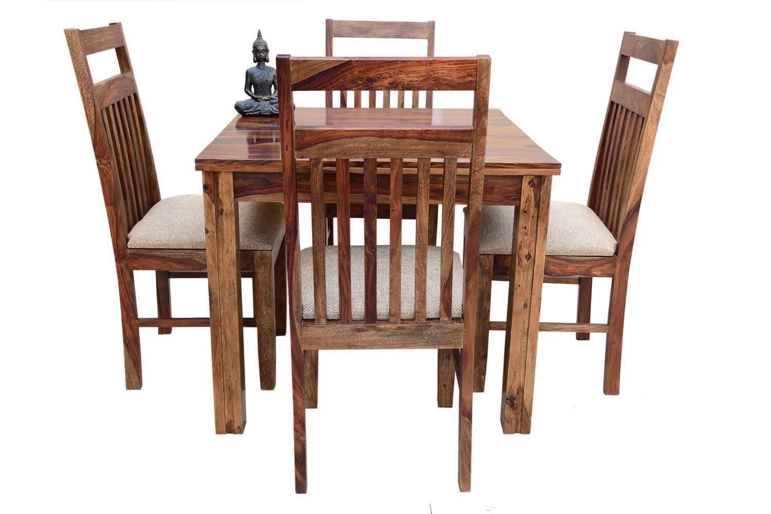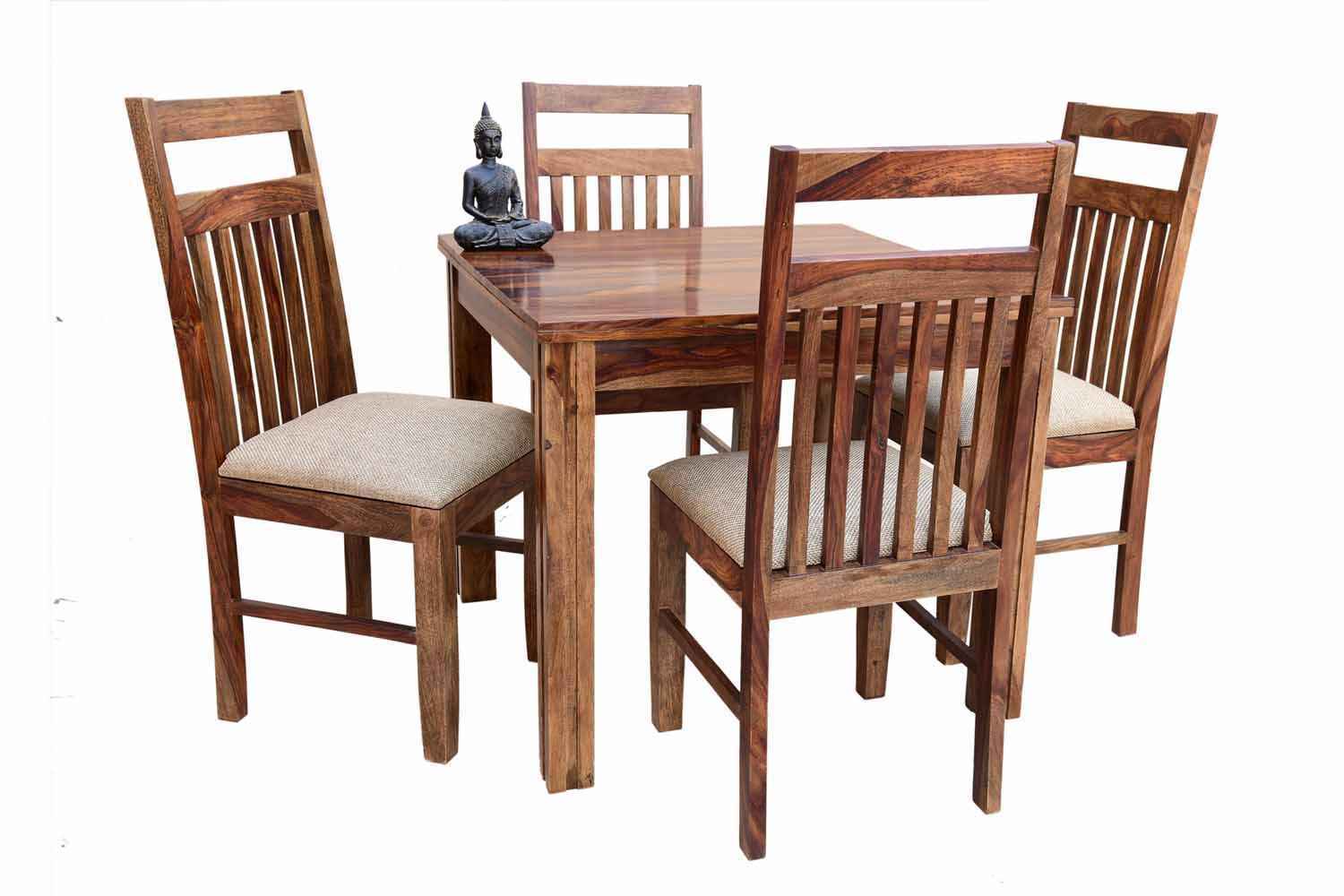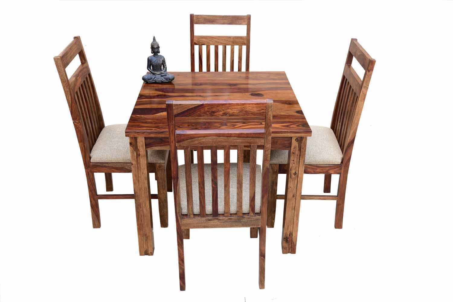 4 Seater Compact Square Dining Table set is made for small space area.It is a light weight and easy to move.It made by Sheesham (Rosewood) with Teak finish.It is a four seater dining table with simple square shape.This design mostly used in small space area as like as restaurants,hotels and small living areas.This dining table contain four Sheesham wood chair with teak finish.