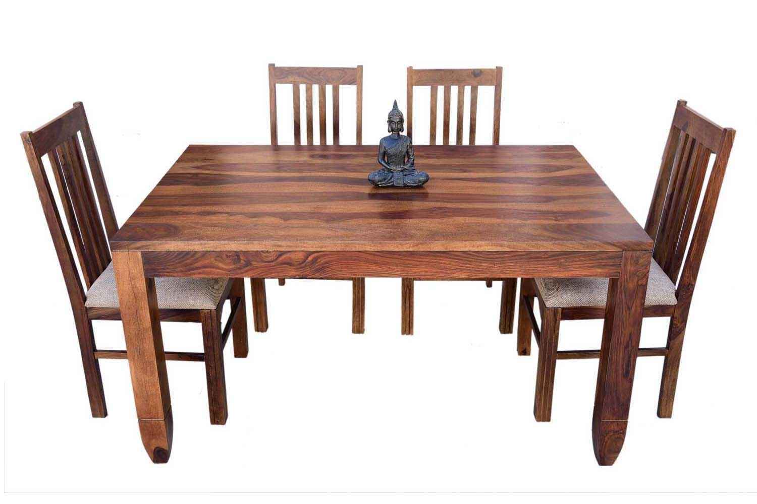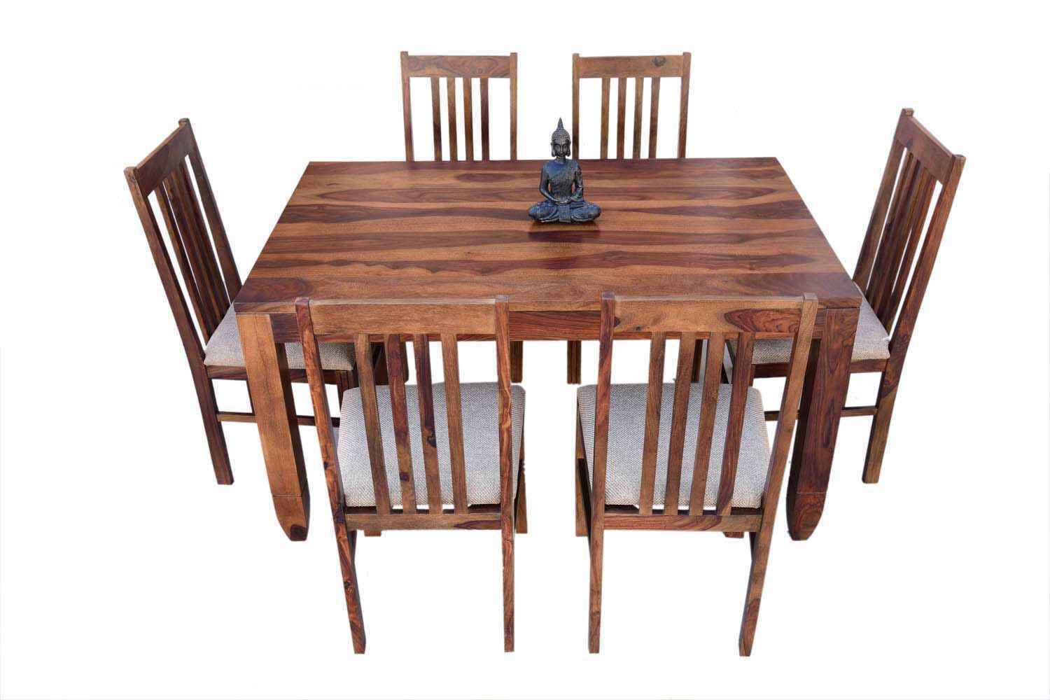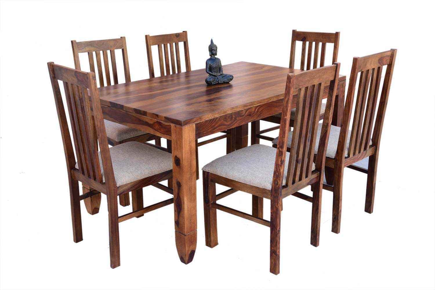 6 Seater Classic Dining Table Set Small size is made for your sweet home.It is made by Sheesham (Rosewood)with walnut finish. This dining table set is simple and good looking. This design mostly used in small space area.This dining table contains six Sheesham wood chair with teak finish. Sheesham wood furniture is always count in best quality furniture.