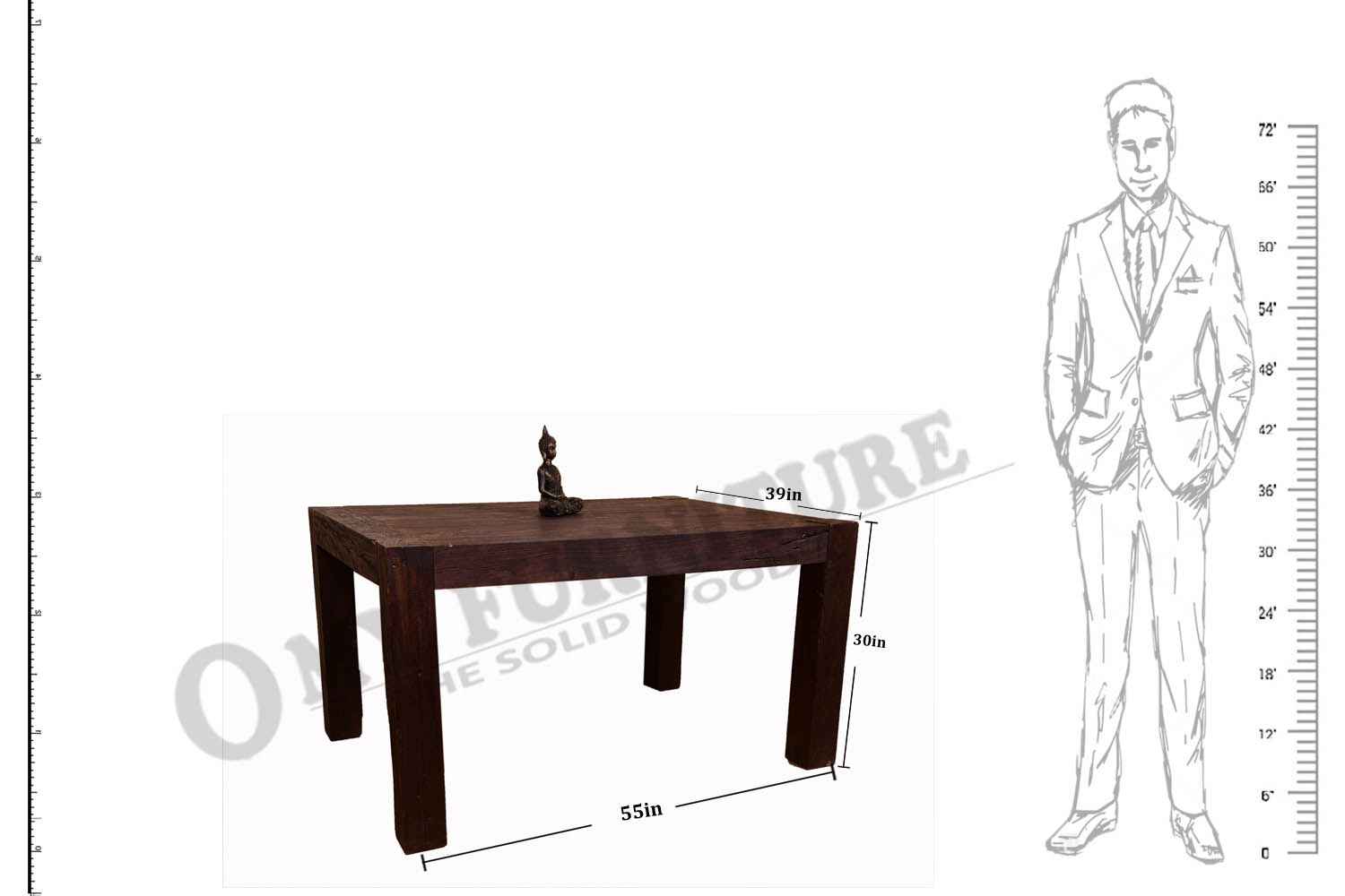 6 Seater Quondam Dining Table Set is made by old wood with walnut finish.It is six sitting dining table with rough finish.legs are attach with top that giving a antique rough look. This dining table contain six Sheesham wood chair with walnut finish. Sheesham wood furniture always count as a best quality and reliable product.