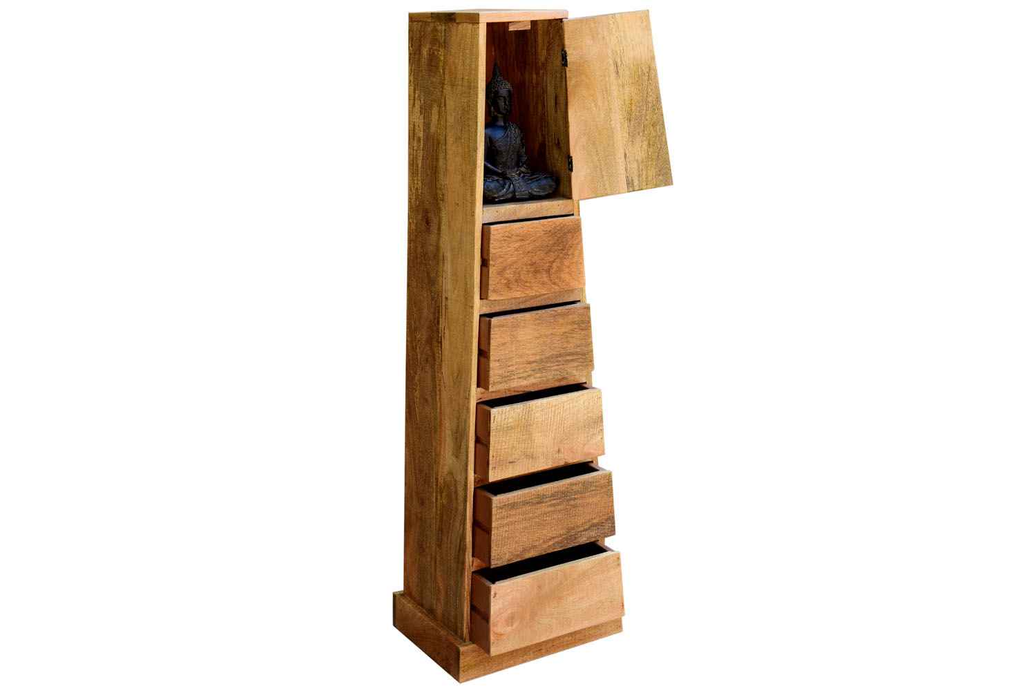 Beamy long chest of drawer is made by Mango wood with walnut and teak finish. This is five drawer set of chest of drawer. We have used walnut finishing in body and drawers are finished with teak that makes it amazing colorful look with more storage capacity and less space consuming that make your interior more attractive.You can buy bedroom furniture online from O my furniture.