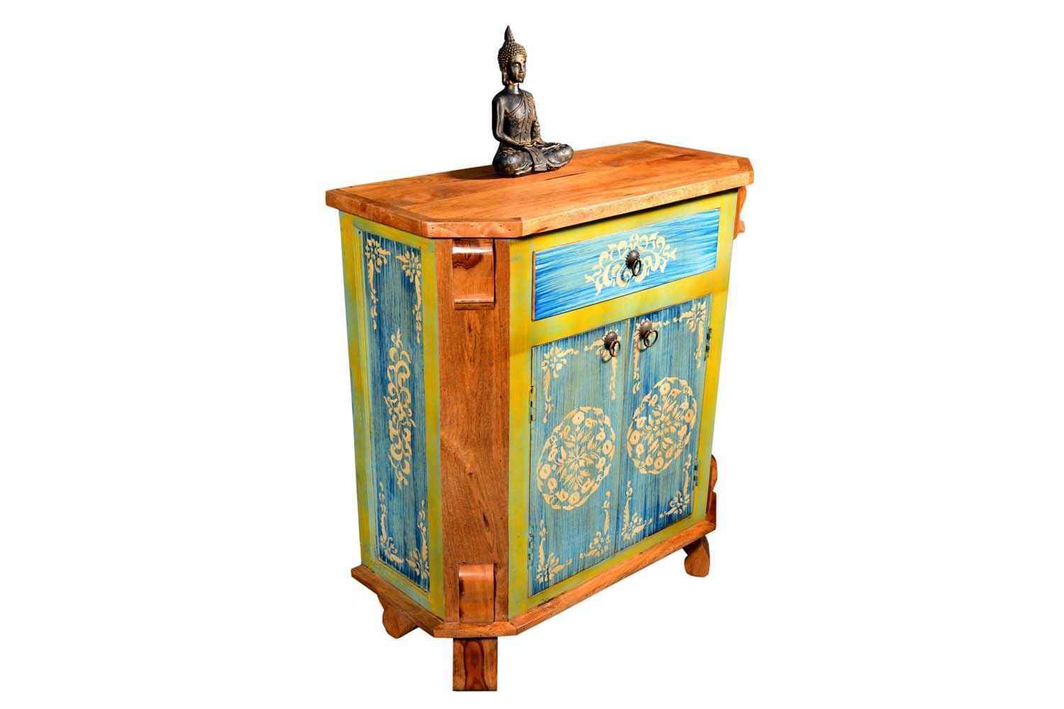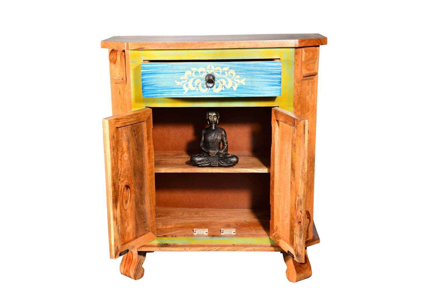 Chirmi Reclaimed one shelf wardrobe is made by Mango Wood with rustic antique finish.This is one door small almirah. We can use it for multipurpose. You can buy Solid wood furniture online from O my furniture.