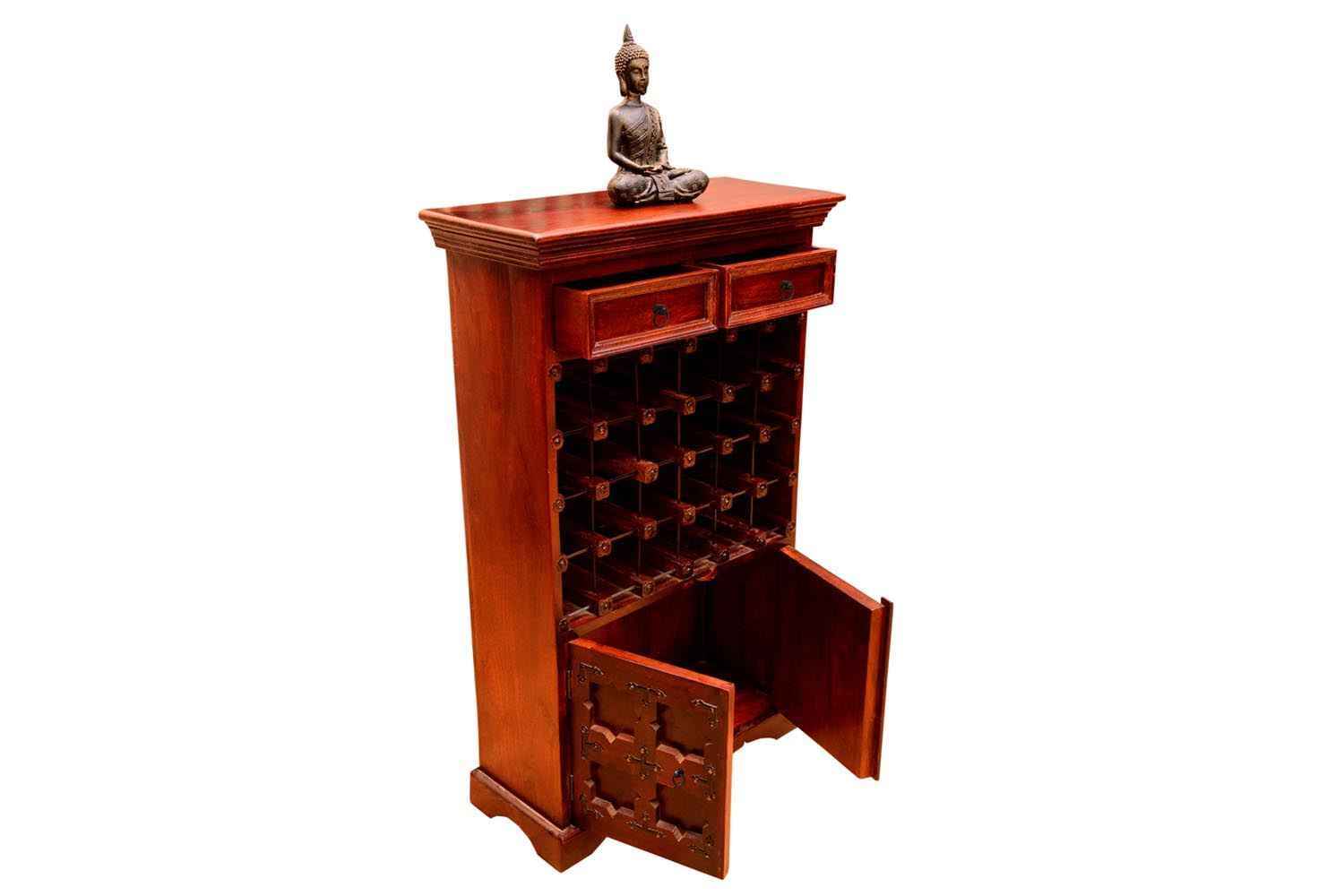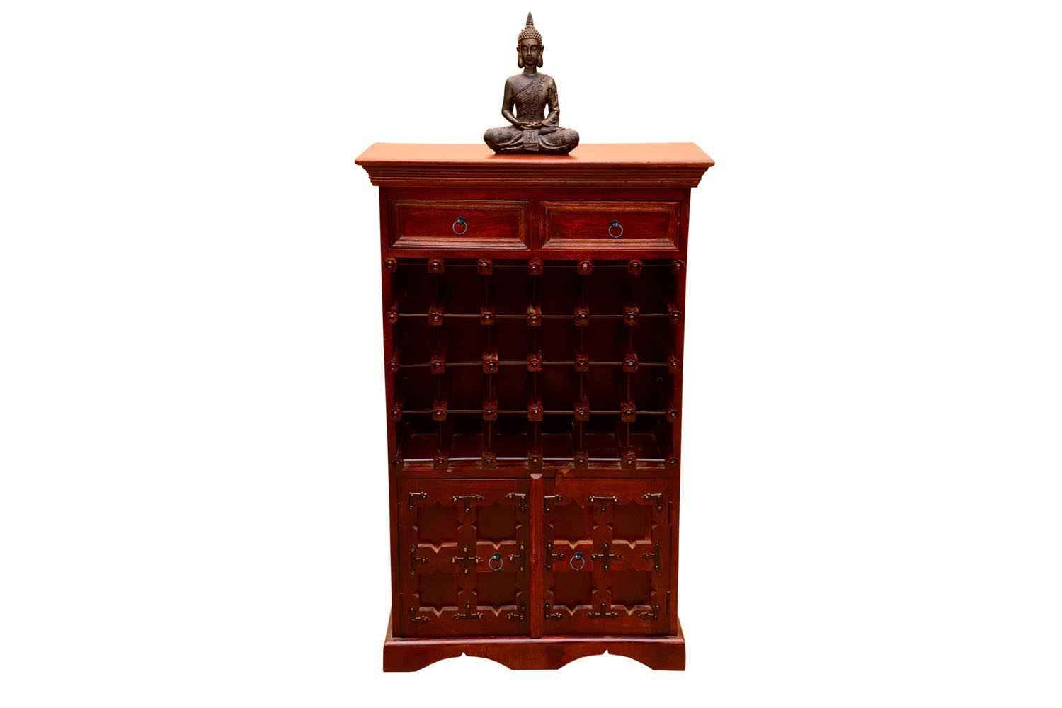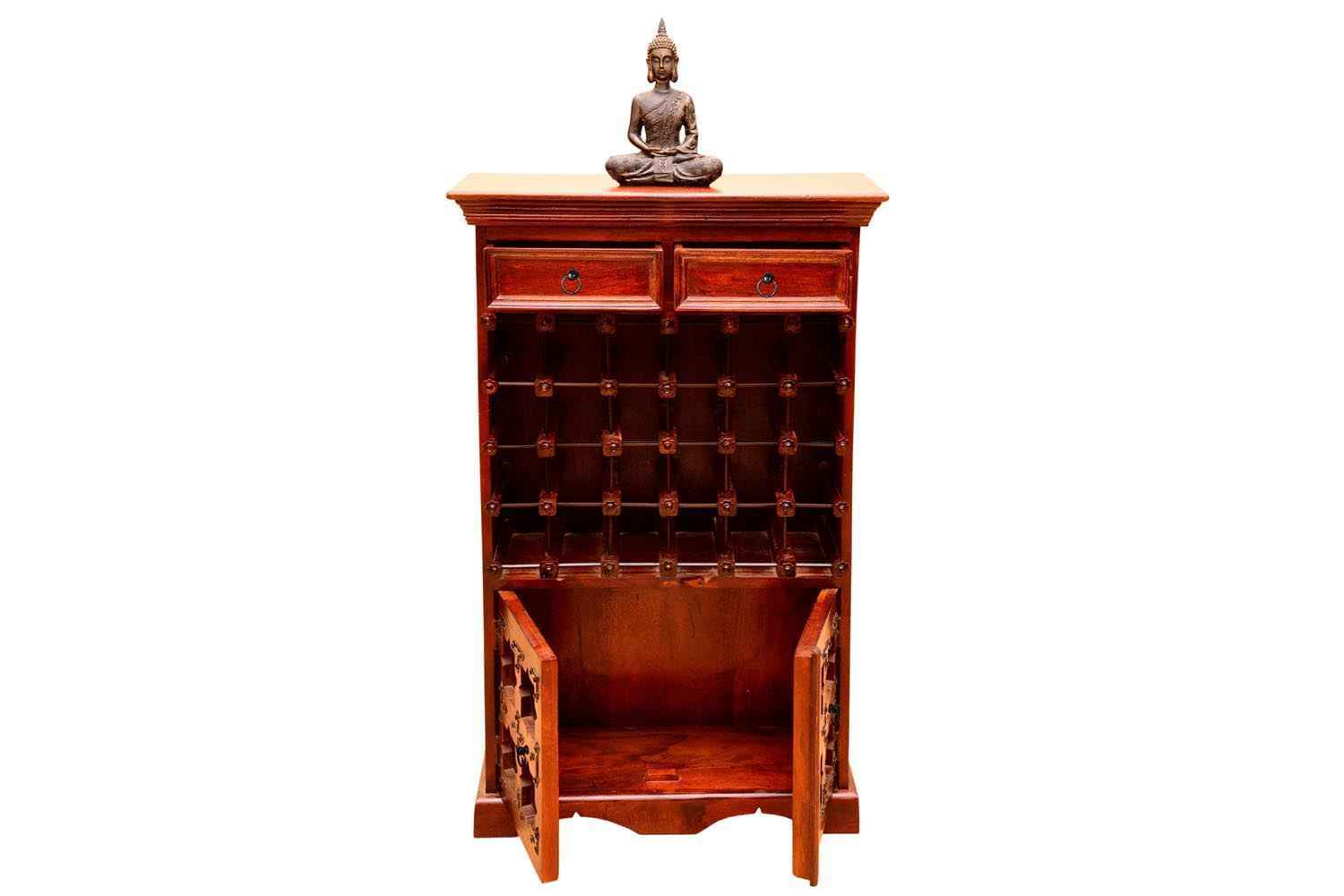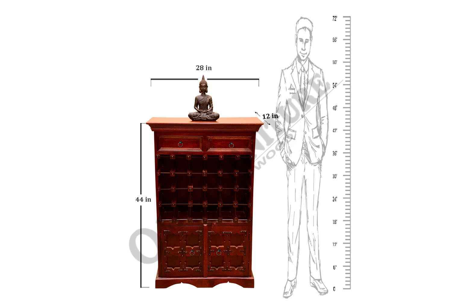 Boldy Bar Cabinet is made by Mango wood with natural finish. This bar cabinet has round legs. We have used powder coated iron as accessories and jigsaw design for the outer portion.It contains bottle holders and many sections. It looks like beautiful antique product. Solid wood furniture always count as a stable furniture or good quality furniture. You can buy Solid wood furniture online from O my furniture.