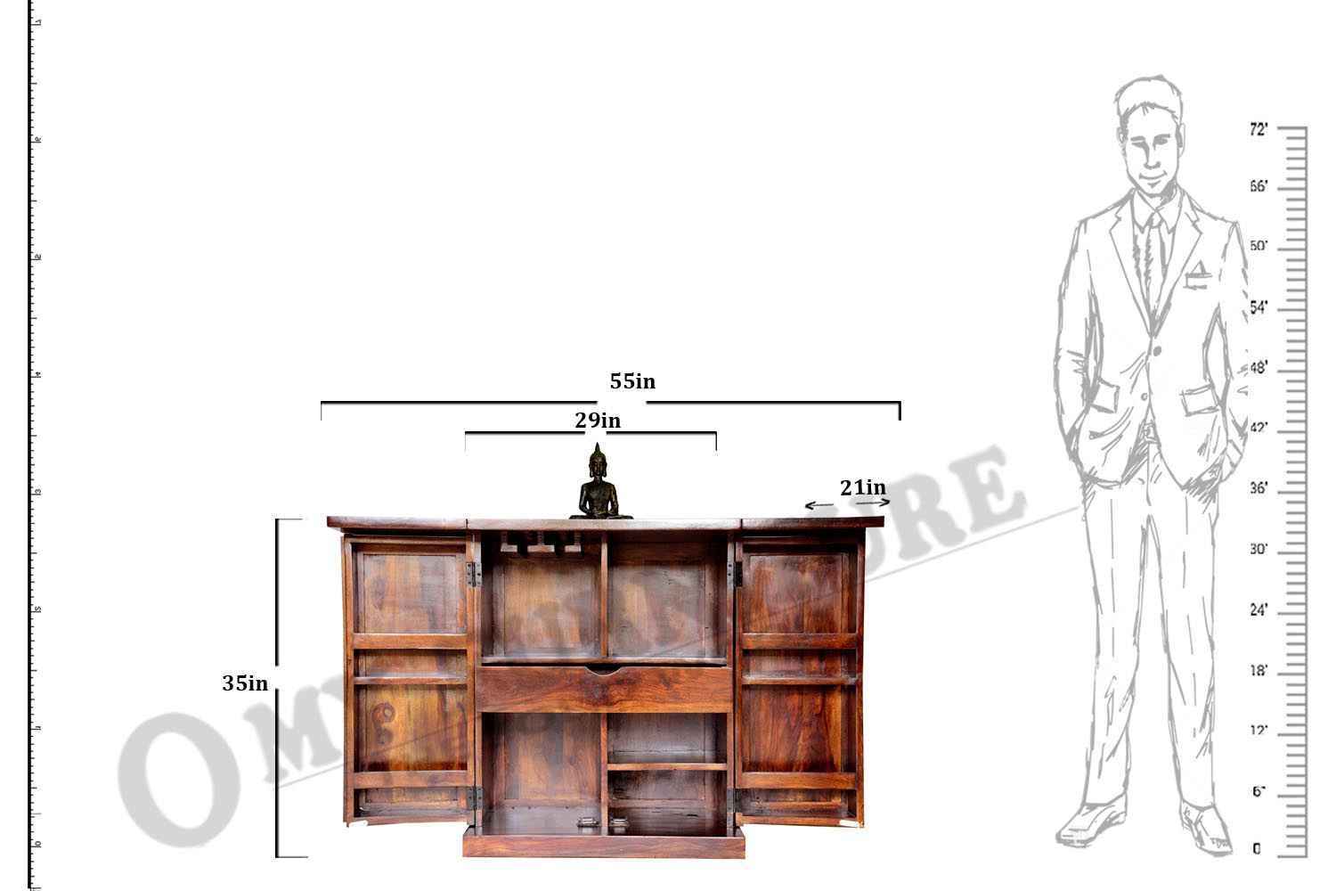 Boldy Bar Cabinet is made by Mango wood with natural finish. This bar cabinet has round legs. We have used powder coated iron as accessories and jigsaw design for the outer portion.It contains bottle holders and many sections. It looks like beautiful antique product. Solid wood furniture always count as a stable furniture or good quality furniture. You can buy Solid wood furniture online from O my furniture.