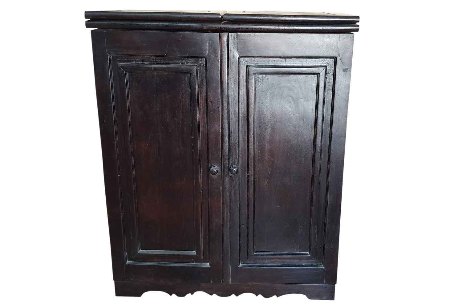 Antique double door teak finish bar cabinet is made by Mango wood with teak finish. This bar cabinet has two drawers in upper portion, one door section in bottom and middle section is open for bottle holder. Iron and wooden mixing work gives vintage look to this wooden bar cabinet. You can purchase furniture online from O my furniture.