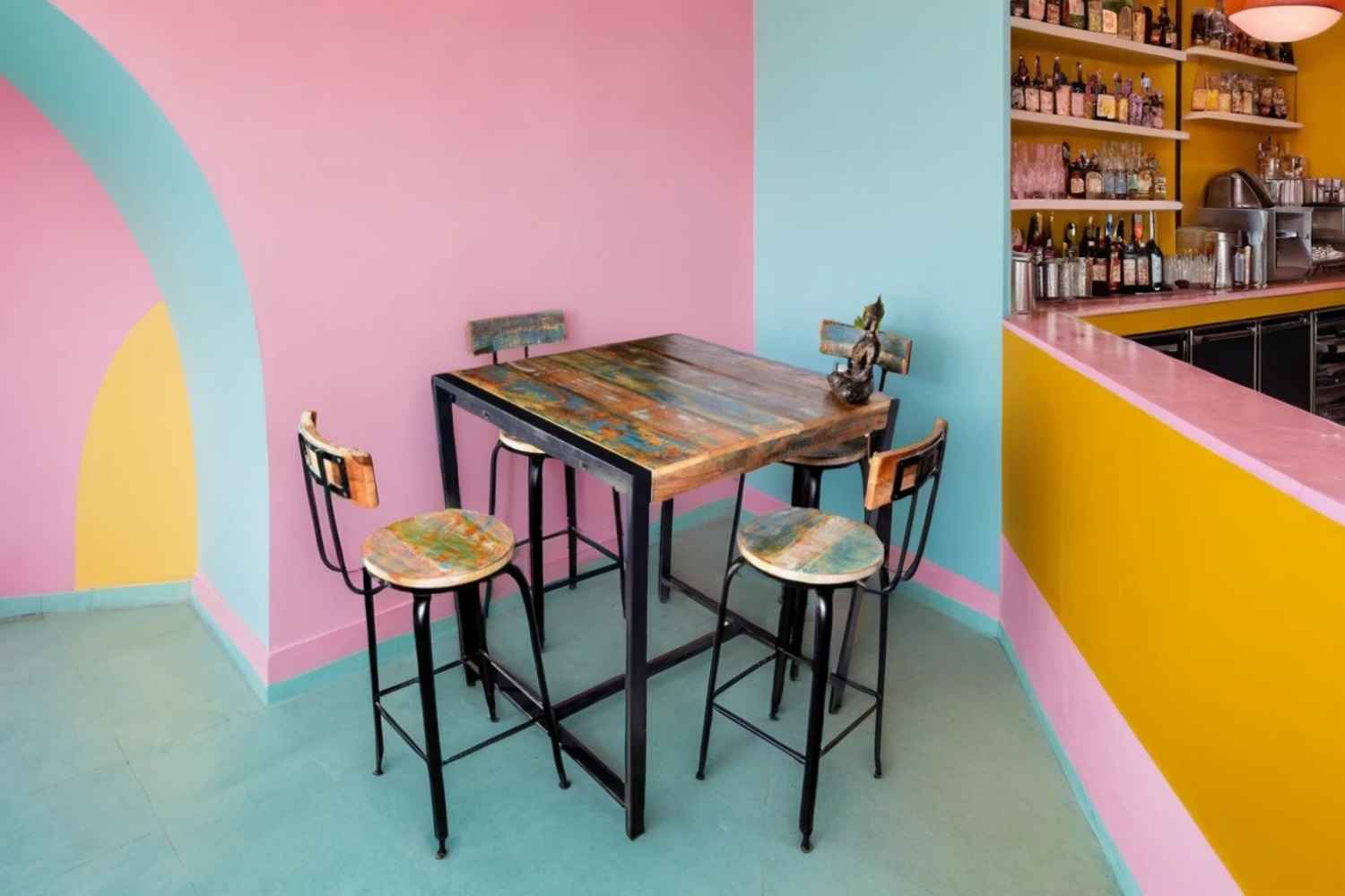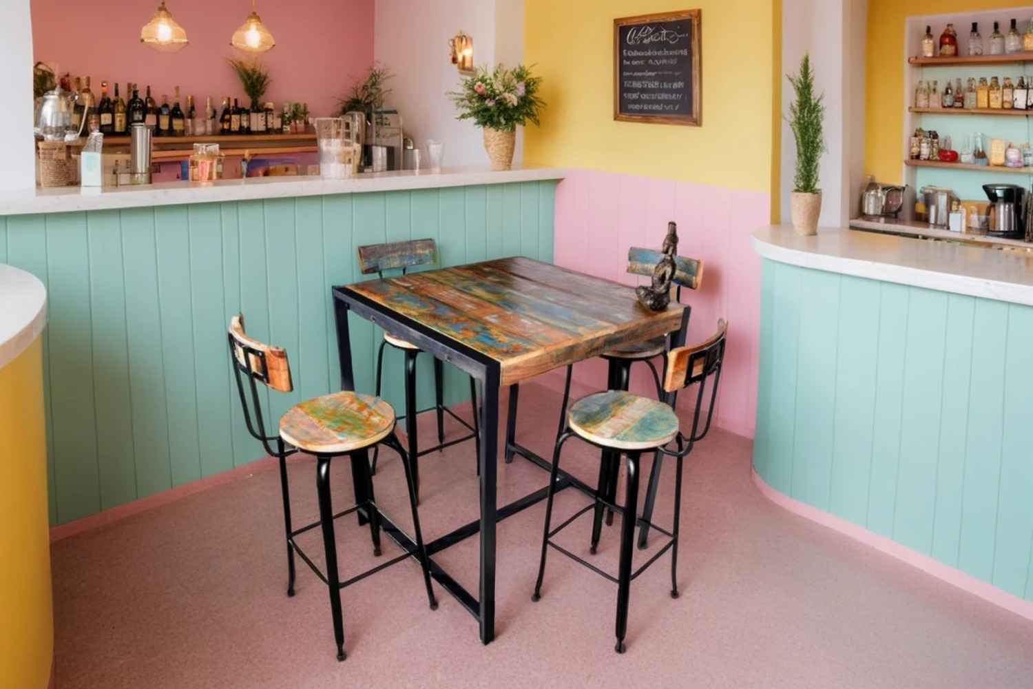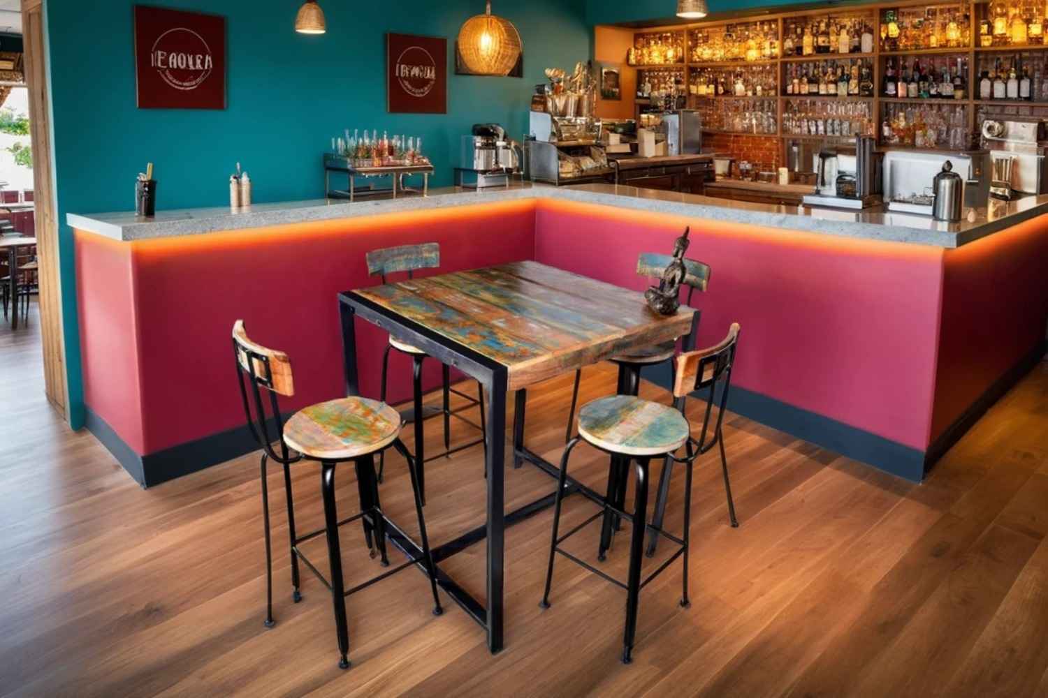 Diggi Bar table is made by Mango wood with natural finish. This bar table is four seater having knockdown facility. Also available with the set of stool. We have used powder coated iron in legs. Purchase furniture online from O my furniture.