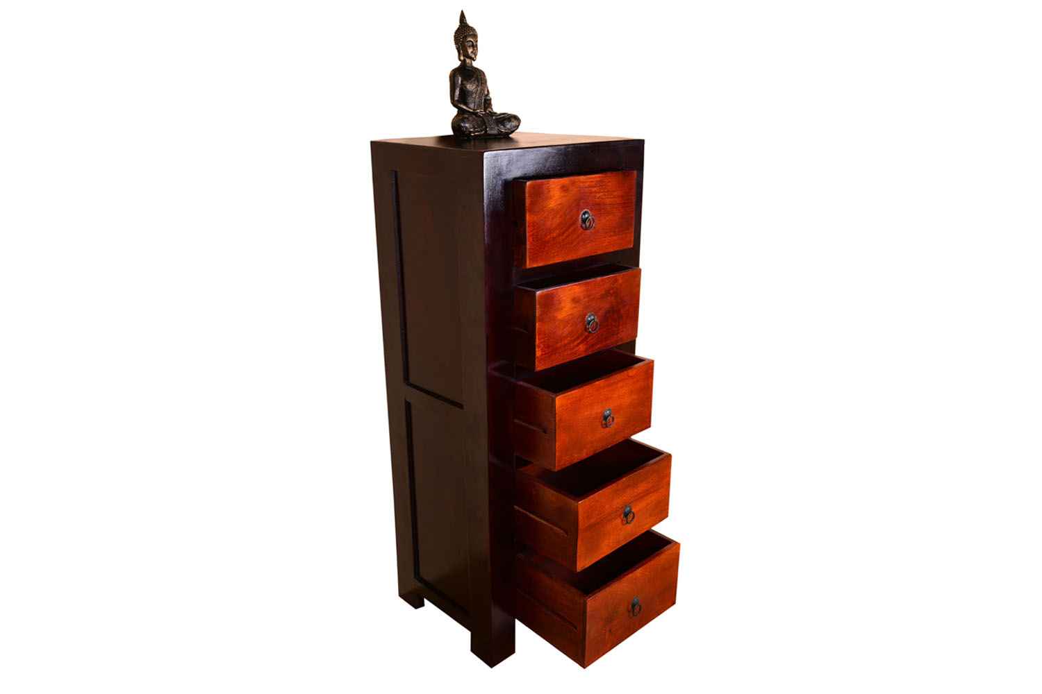 Beamy chest of drawer is made by Sheesham (Rosewood) with teak finish. Beamy chest of drawer having five drawers.This chest of drawer contains two small drawers in upper row and other three drawers are equal in shape and size followed one by one in sequence.We have used same wooden accessories in handle. Sheesham wood furniture is always count in best quality furniture product.You can buy Sheesham wood furniture online from O my furniture.
