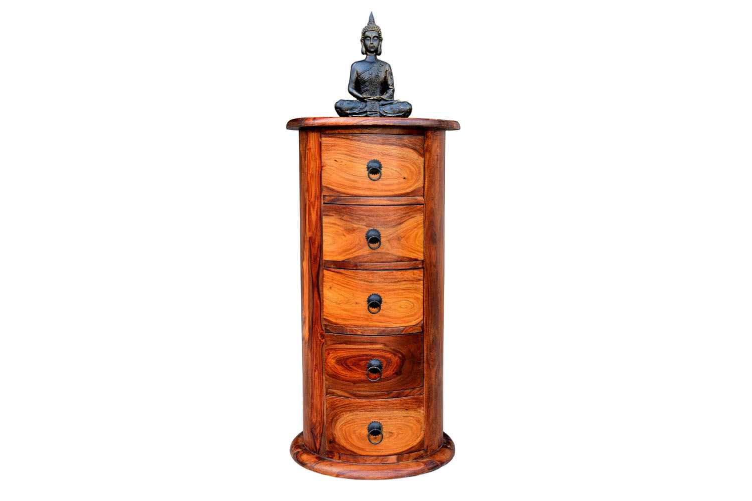 Beamy five drawers teak finish chest of drawer is made by Sheesham (Rosewood)  with teak finish. It Sheesham wood chest of drawer has five doors with iron handle accessories. It is in round shape and its top and bottom is lightly outer from the whole body frame. it’s heavy and stable Sheesham chest of drawer. Sheesham wood furniture is best choice to purchase furniture online from O my furniture.