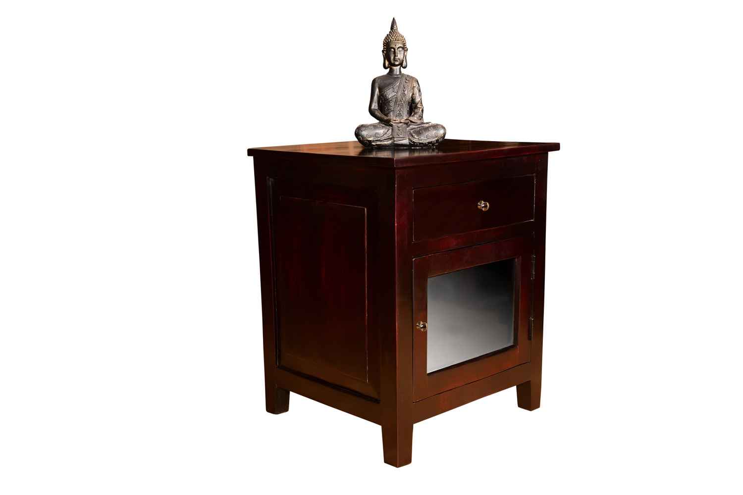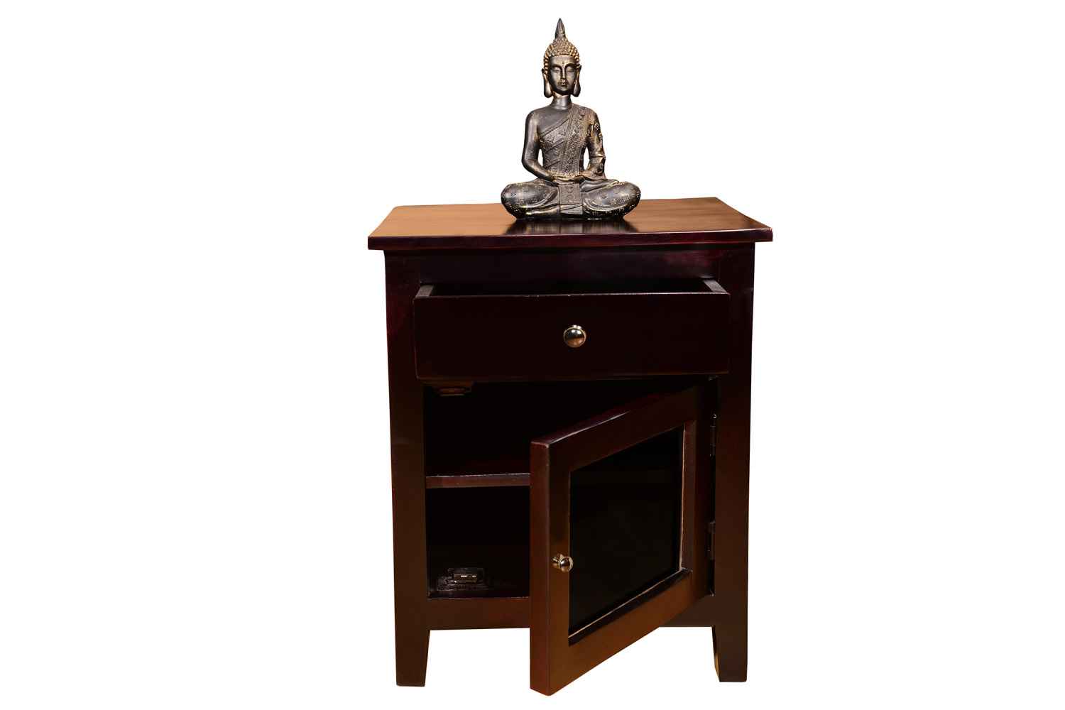 Marlboro Bedside is made by Sheesham (Rosewood) with Mahogany finish.It is one door bedside. Between top and side body frame, there is a gape and top is not completely attached with sides of the frame that gives an amazing look. In inner side there is a shelf which divide it into two parts section. For making of this wooden bedside we used magnet in inner section to give completely grip to the door. Door contain knob to open it easily. Sheesham wood furniture always count in good quality & reliable furniture.You can buy Sheesham wood furniture online from O my furniture.