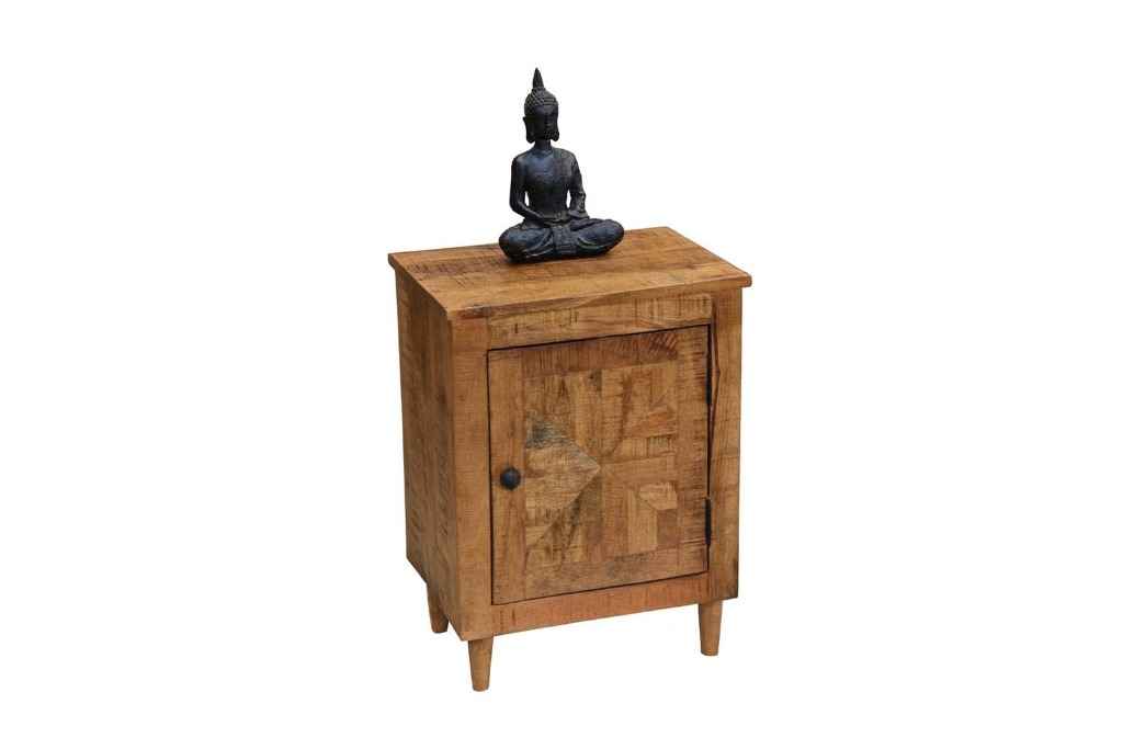 Marlboro Bedside is made by Sheesham (Rosewood) with Mahogany finish.It is one door bedside. Between top and side body frame, there is a gape and top is not completely attached with sides of the frame that gives an amazing look. In inner side there is a shelf which divide it into two parts section. For making of this wooden bedside we used magnet in inner section to give completely grip to the door. Door contain knob to open it easily. Sheesham wood furniture always count in good quality & reliable furniture.You can buy Sheesham wood furniture online from O my furniture.