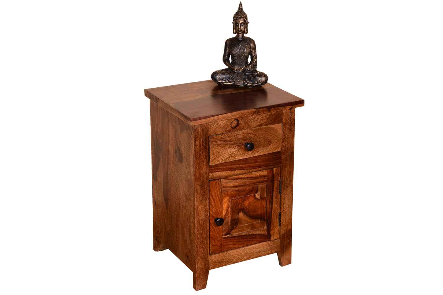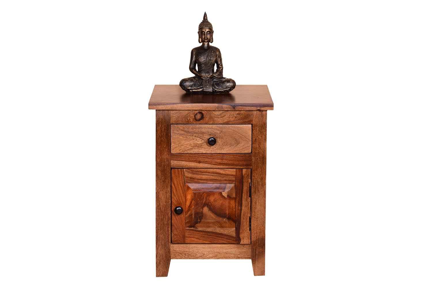 Marlboro Bedside is made by Sheesham (Rosewood) with Mahogany finish.It is one door bedside. Between top and side body frame, there is a gape and top is not completely attached with sides of the frame that gives an amazing look. In inner side there is a shelf which divide it into two parts section. For making of this wooden bedside we used magnet in inner section to give completely grip to the door. Door contain knob to open it easily. Sheesham wood furniture always count in good quality & reliable furniture.You can buy Sheesham wood furniture online from O my furniture.