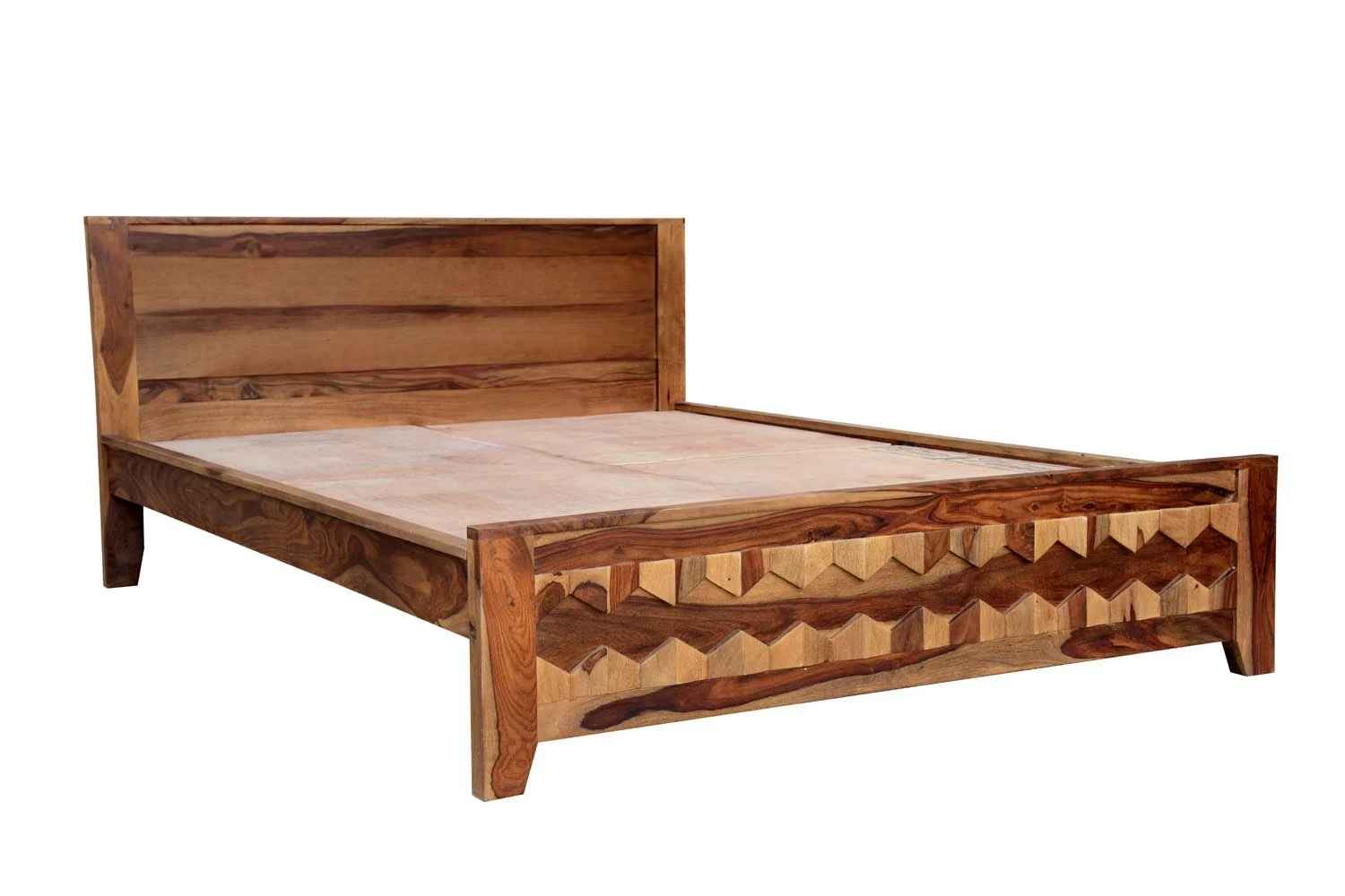 Spline Queen Bed is made up of Sheesham (Rosewood) with teak and iron finishing. It is queen size bed. Head and leg portion of the bed are design with Sheesham wooden strips quilling by iron rods. It is without storage bed and easy to move. It’s quilling strip giving a unique look.You can buy this Sheesham wood furniture online from O my furniture.