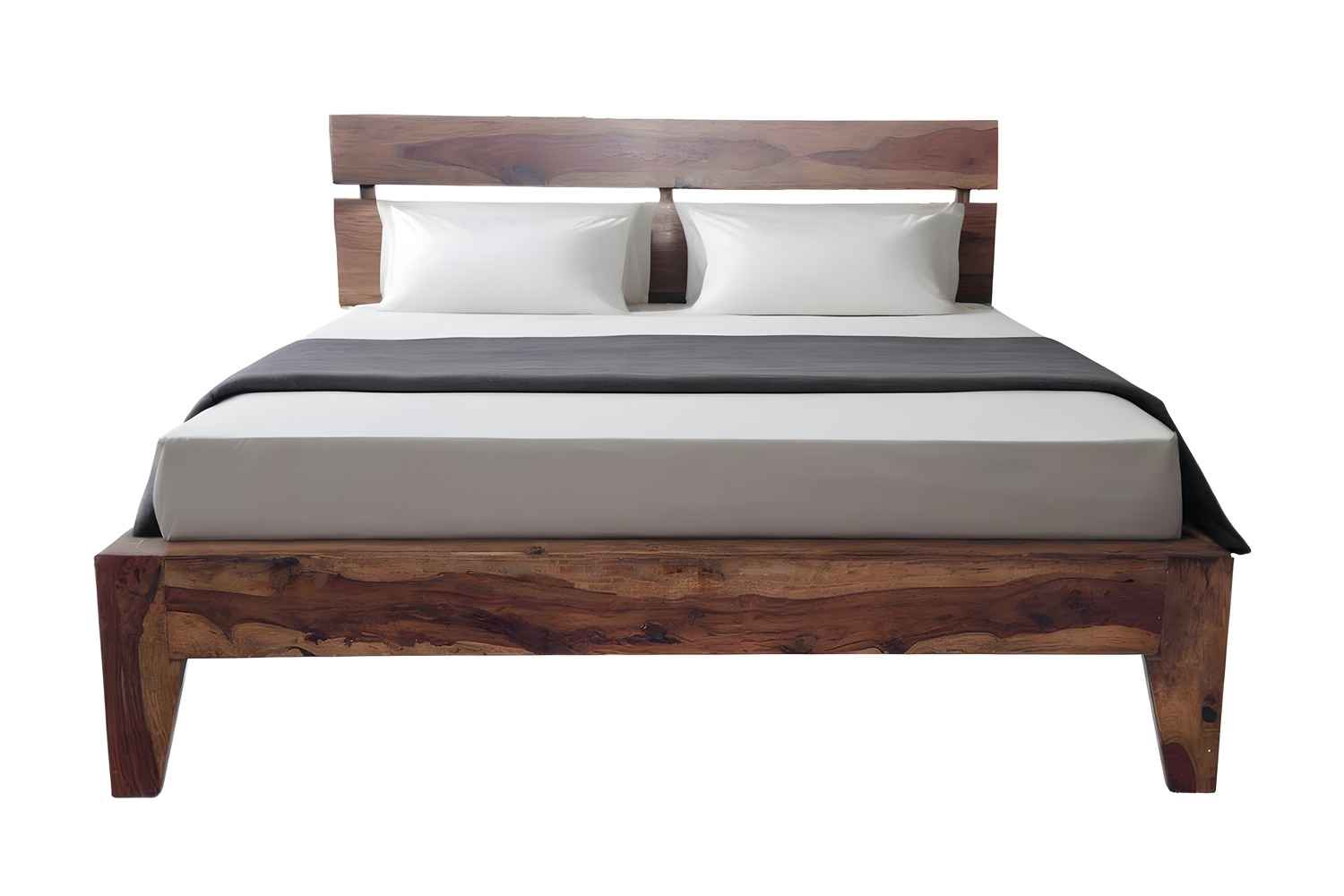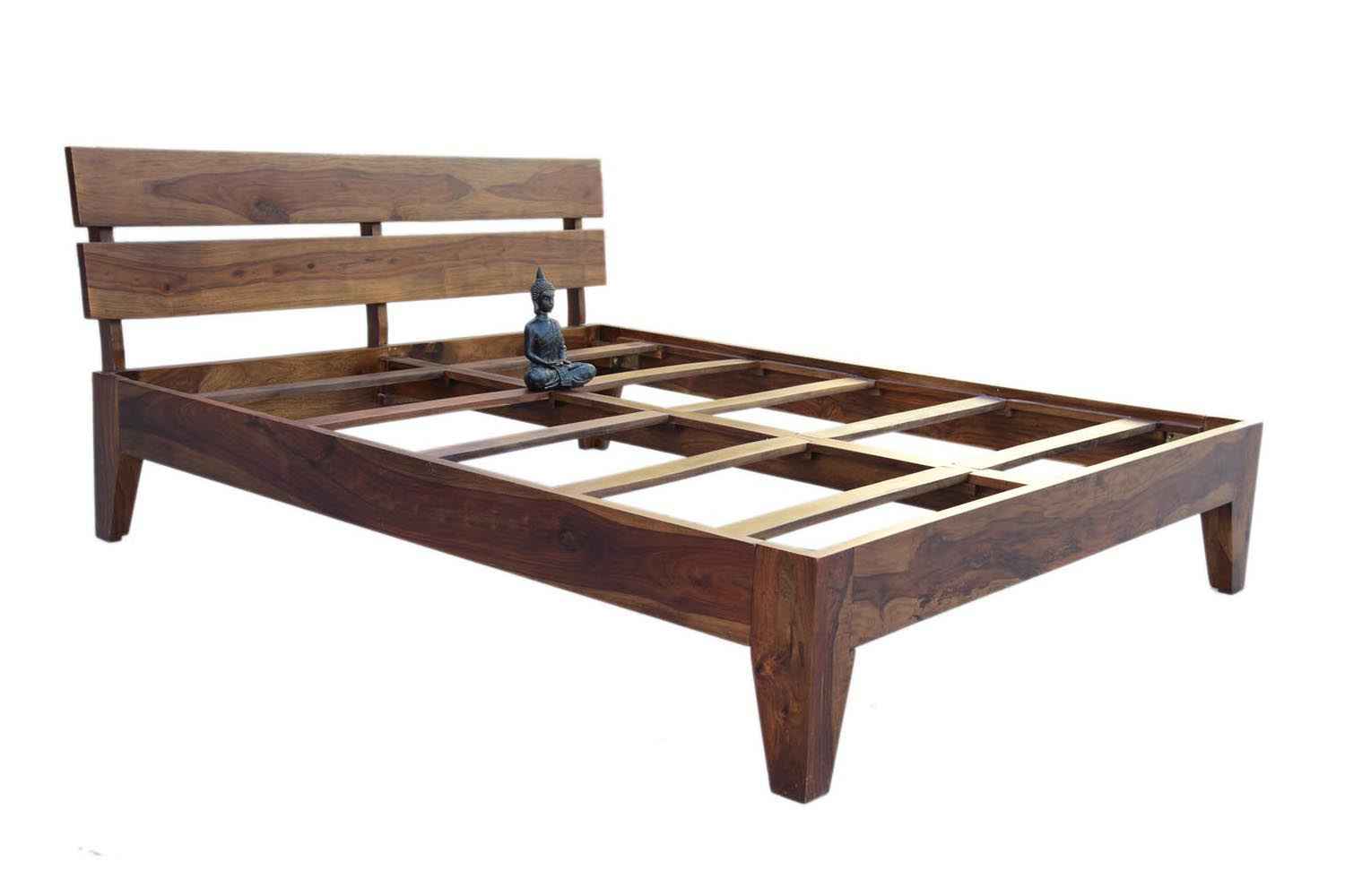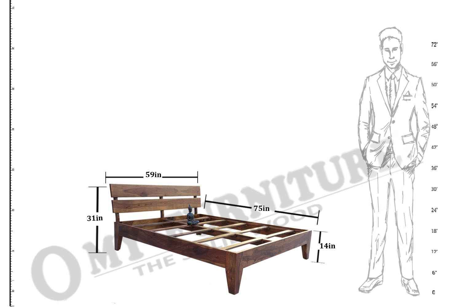 Spline Queen Bed is made up of Sheesham (Rosewood) with teak and iron finishing. It is queen size bed. Head and leg portion of the bed are design with Sheesham wooden strips quilling by iron rods. It is without storage bed and easy to move. It’s quilling strip giving a unique look.You can buy this Sheesham wood furniture online from O my furniture.