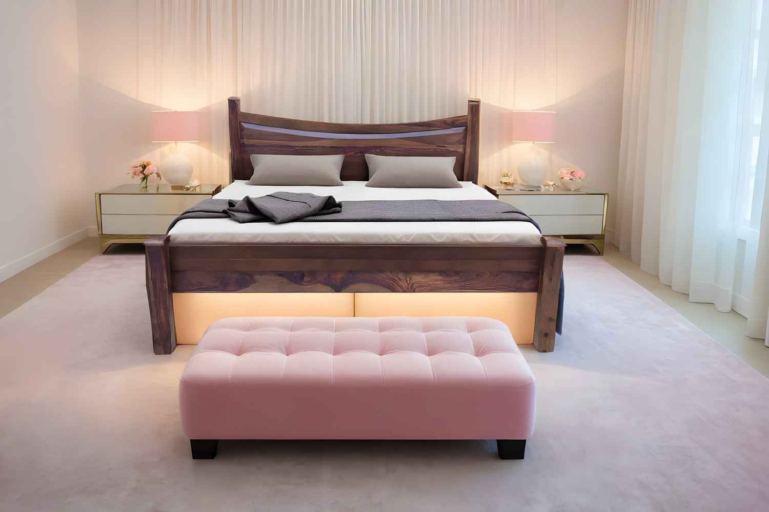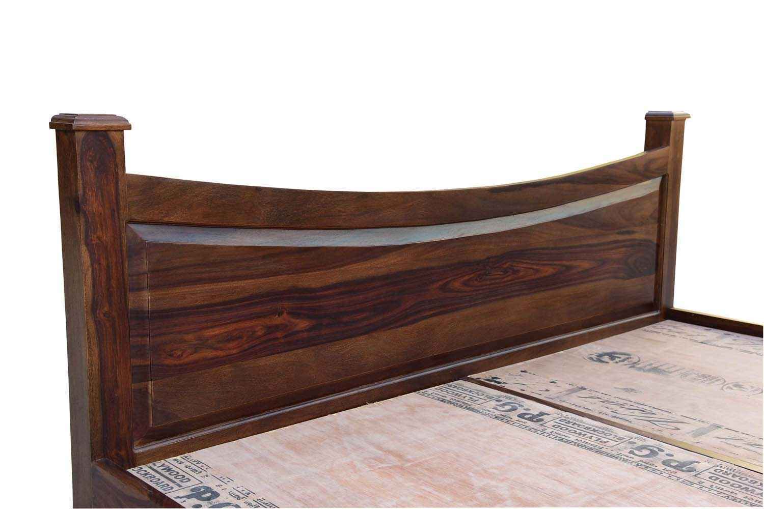 Spline Queen Bed is made up of Sheesham (Rosewood) with teak and iron finishing. It is queen size bed. Head and leg portion of the bed are design with Sheesham wooden strips quilling by iron rods. It is without storage bed and easy to move. It’s quilling strip giving a unique look.You can buy this Sheesham wood furniture online from O my furniture.