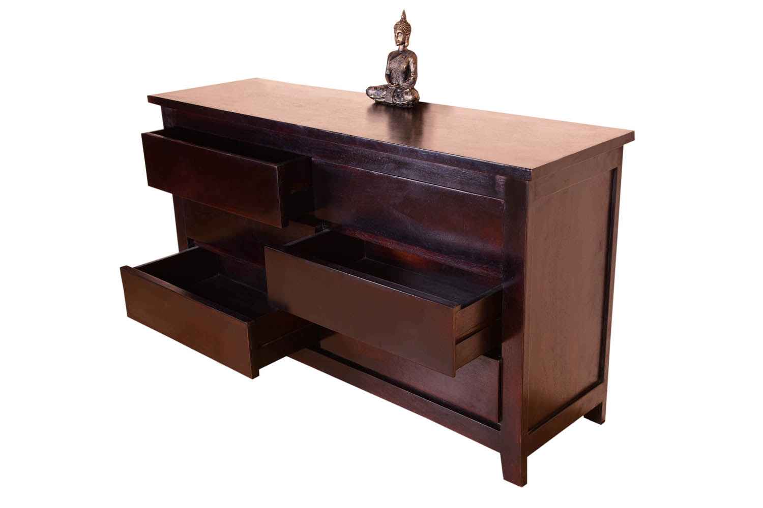 Beamy long chest of drawer is made by Mango wood with walnut and teak finish. This is five drawer set of chest of drawer. We have used walnut finishing in body and drawers are finished with teak that makes it amazing colorful look with more storage capacity and less space consuming that make your interior more attractive.You can buy bedroom furniture online from O my furniture.