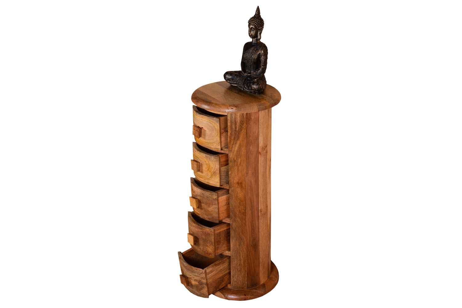 Beamy Five Drawer Natural Finish Mango Round Chest Of Drawer