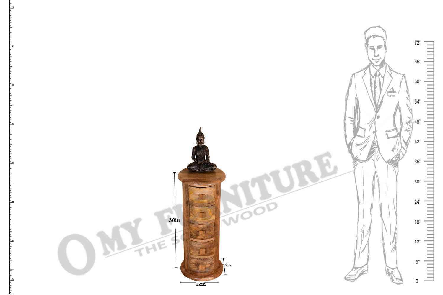 Beamy five drawer natural finish mango round chest of drawer made by Mango wood with natural finish.It is round in shape.It has five drawers with some wooden handles.Top and bottom is slightly rounded in shape which gives vintage look to the product.You can buy best quality Solid wood furniture online from O my furniture.