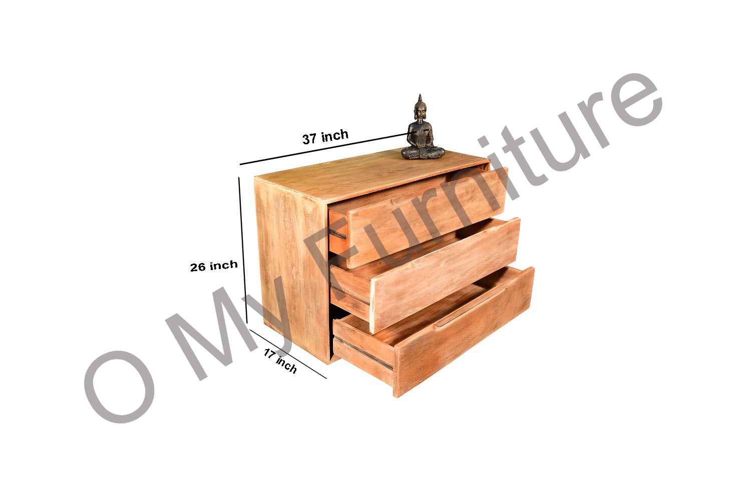 Hoary design bleach finish chest of drawer is made by Acacia wood with bleach finish. It is five drawer set. This wooden chest of drawer contain two small and three large size drawer with powder coated iron handle accessories.This wooden chest of drawer is long lasting & best quality furniture.You can buy Solid wood furniture online from O my furniture.