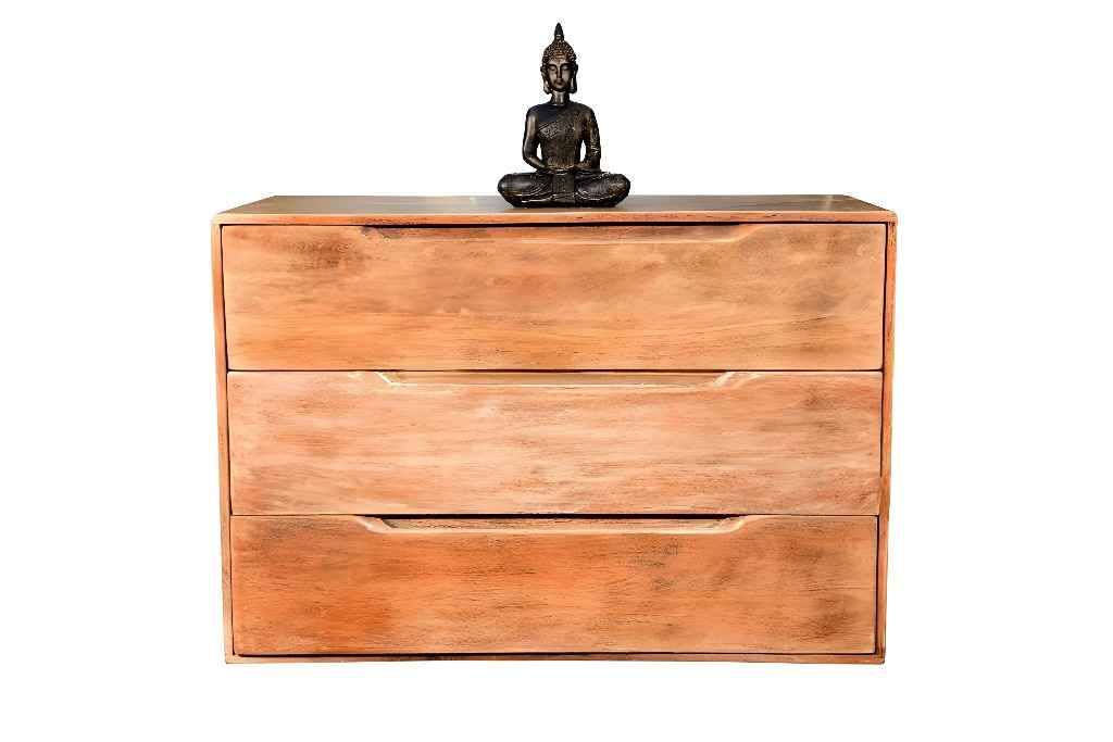 brevis rustic chest of drawer chest of drawer is made by mango wood, mdf with deco finishing. Our new brevis rustic range of beautiful handcrafted side boards, chest of drawers and desk are sure to turn a eye and that sparkle to any home interior. Made from solid wood leg, mdf and our new range comes in a mix of coloured drawers and handles to add that wow factory to any room.