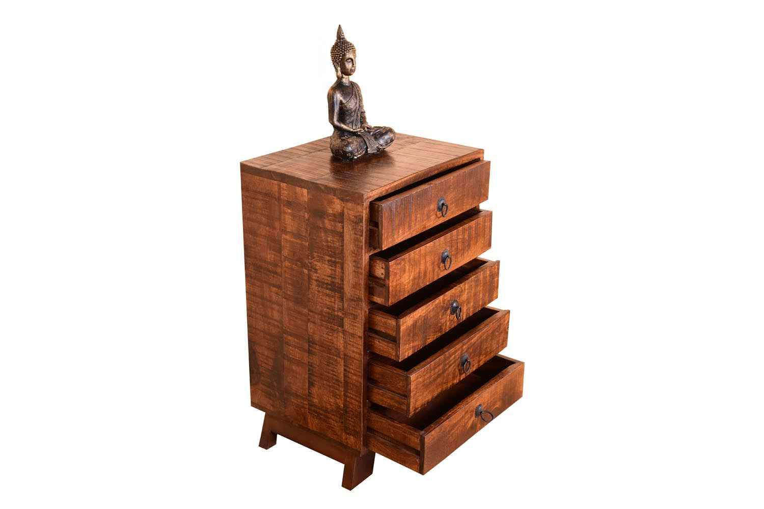 Beamy long chest of drawer is made by Mango wood with walnut and teak finish. This is five drawer set of chest of drawer. We have used walnut finishing in body and drawers are finished with teak that makes it amazing colorful look with more storage capacity and less space consuming that make your interior more attractive.You can buy bedroom furniture online from O my furniture.
