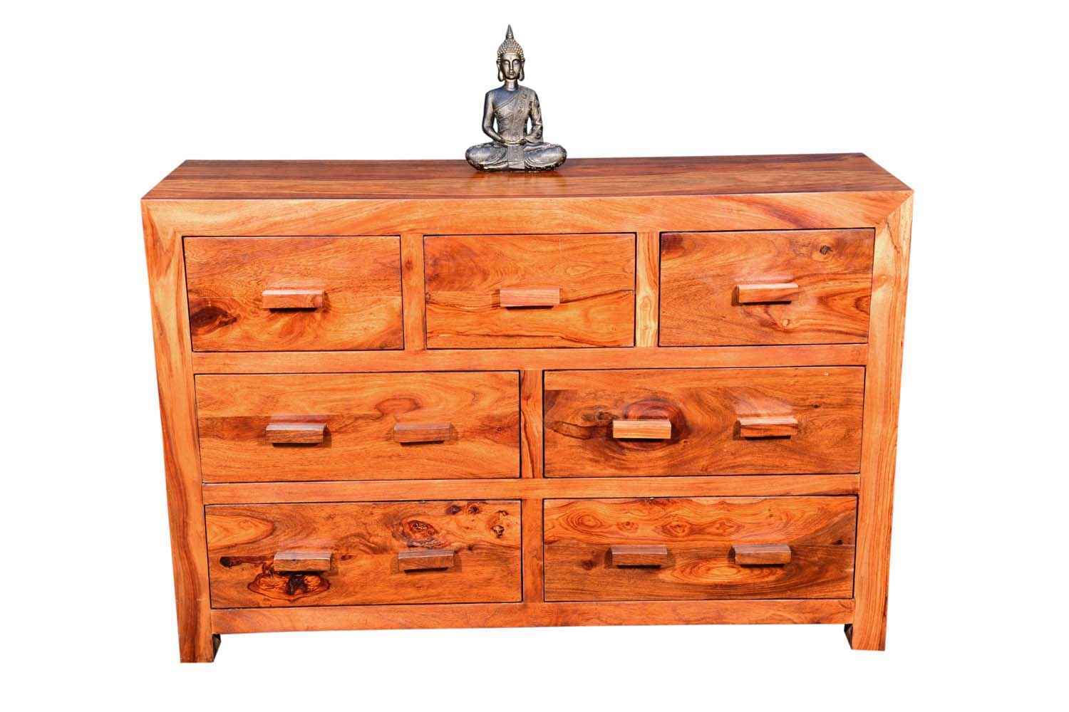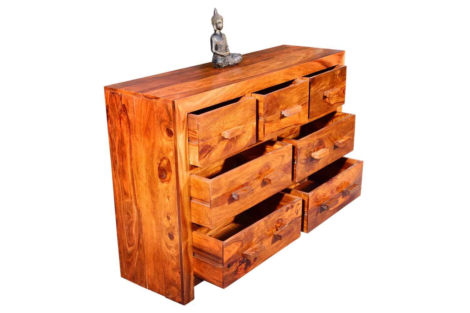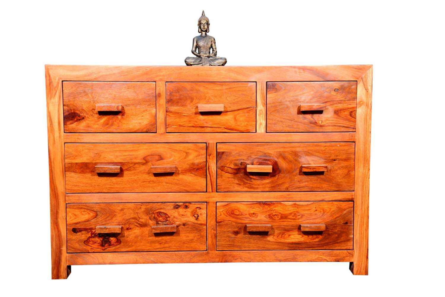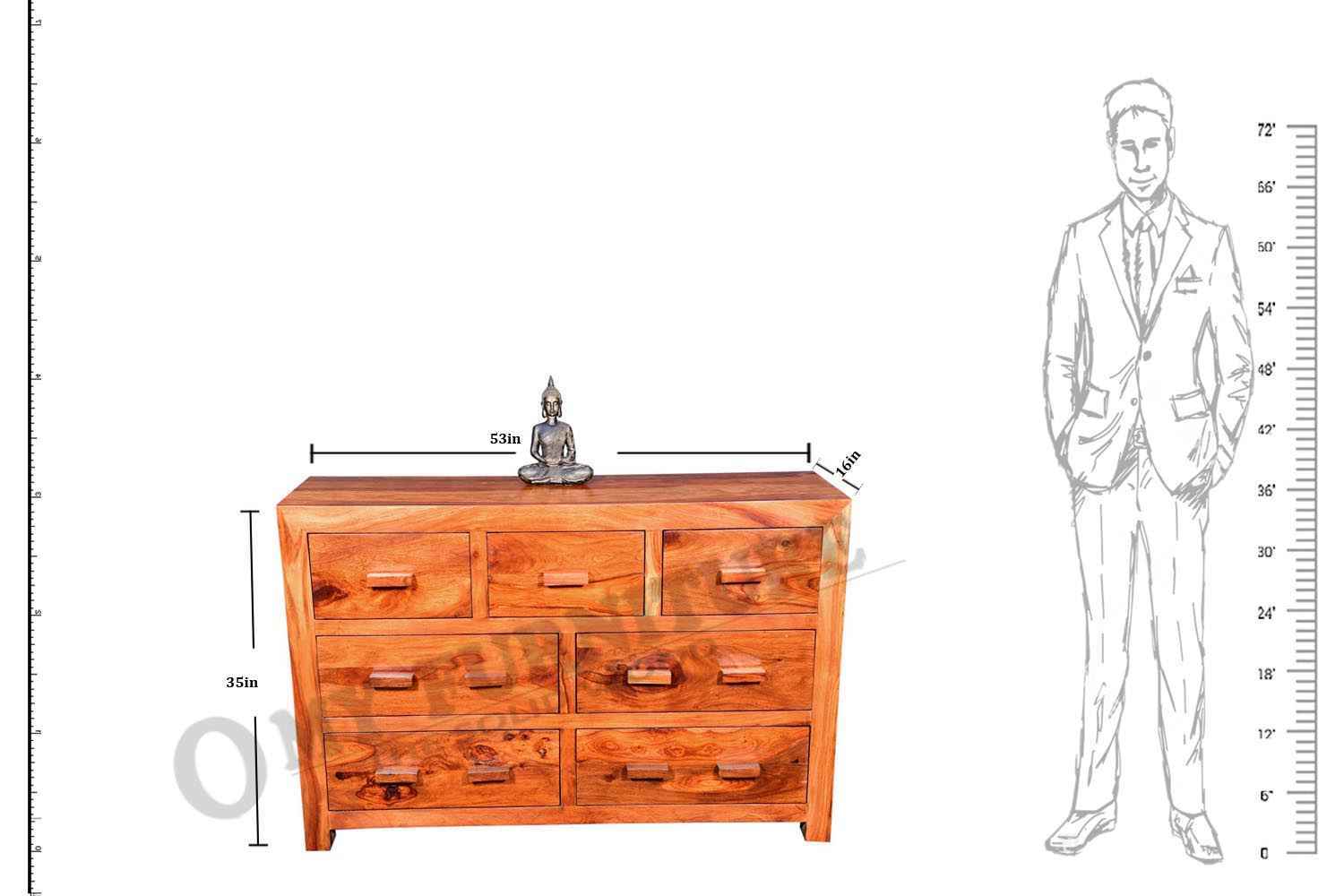 Oblong teak finish chest of drawer is made by Sheesham (Rosewood) with teak finish. This chest of drawer contains seven drawer with some wooden handle accessories. The drawers in first horizontal raw are marginally smaller than from the others. We have followed simple design to make this chest of drawer. It’s heavy and stable wooden chest of drawer.You can buy Sheesham wood furniture online from O my furniture.