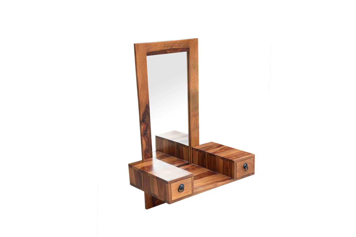 Urious wall hanging dressing is made by Sheesham wood (rosewood) with teak finish. This sheesham wall hanging has two side drawers with iron handle. You can buy solid wood furniture online from O my furniture.