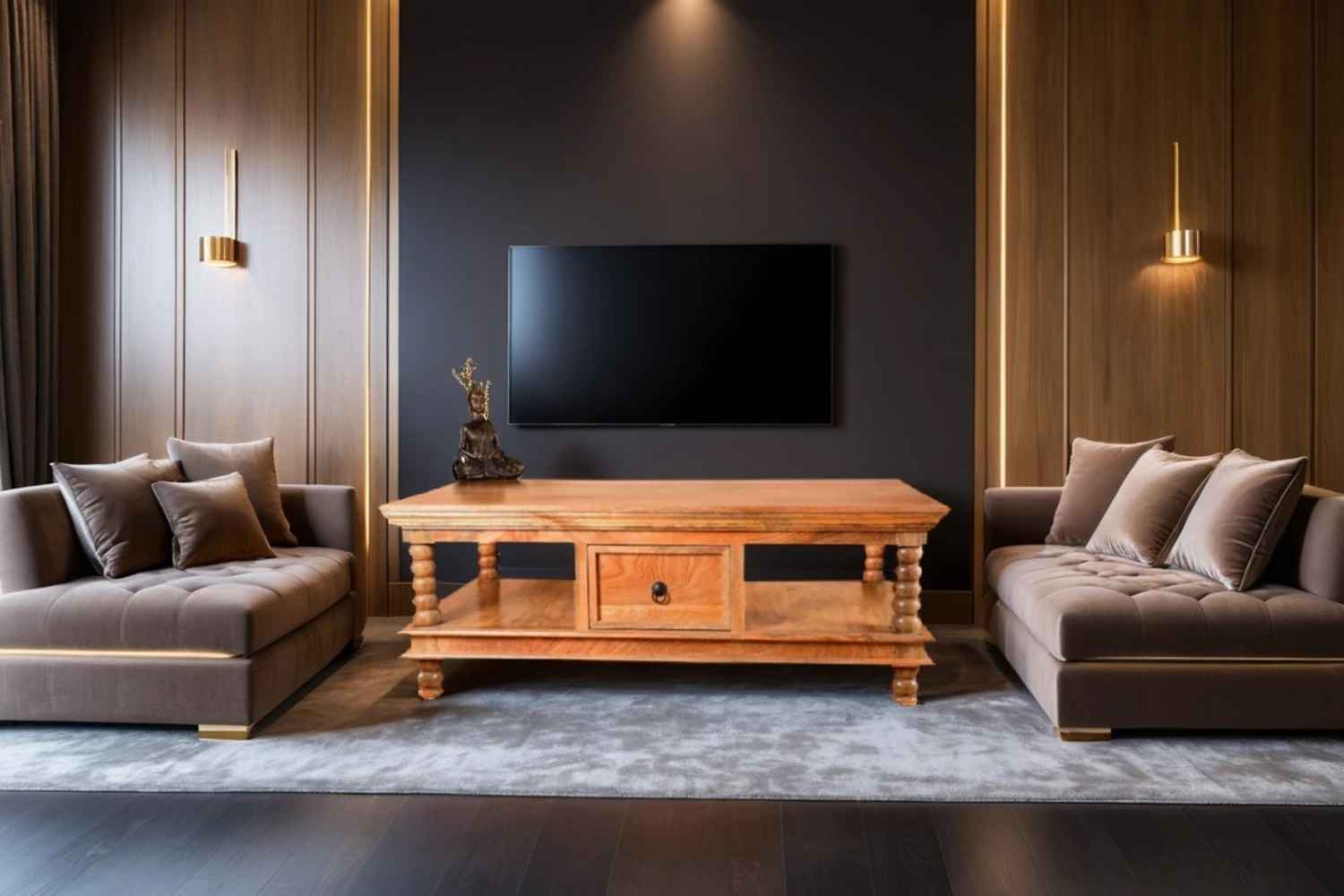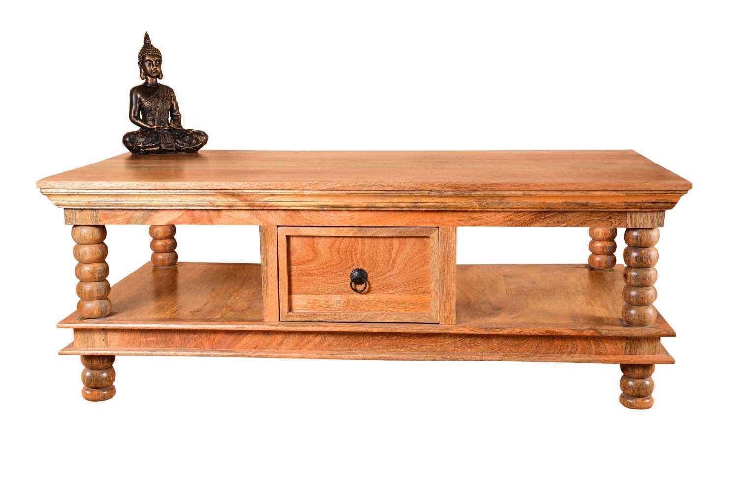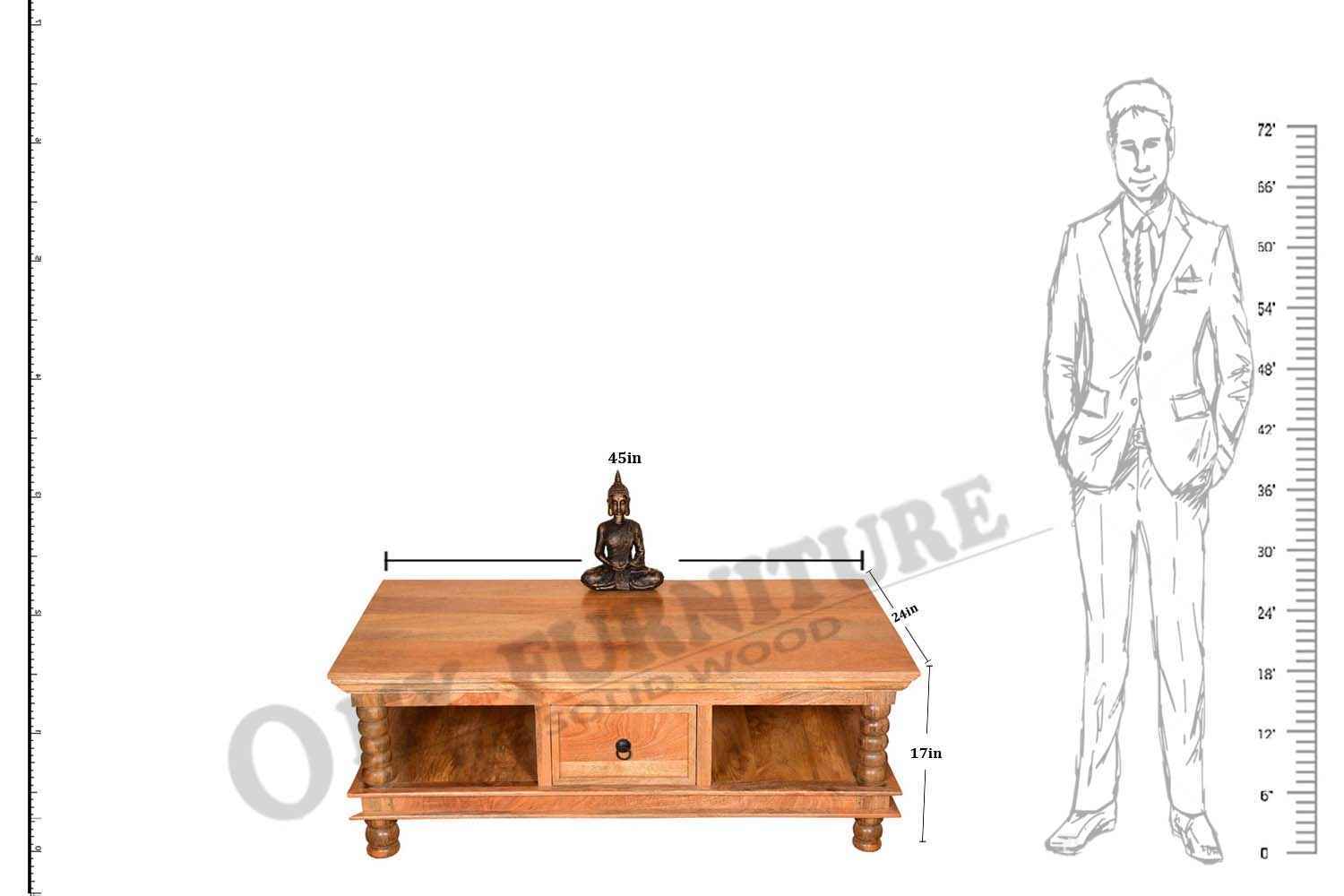 Quondam bottom shelf coffee table is made by Acacia wood with bleach finish. Bleach finish for giving this product rough look.This coffee table have two slit line design on bottom left and right side. A rectangle bottom shelf is attached with their legs. That gives antique look. Solid wood furniture always count in best quality furniture.O my furniture a complete Solid wood furniture stores help to increase your living room and bedroom decorum.