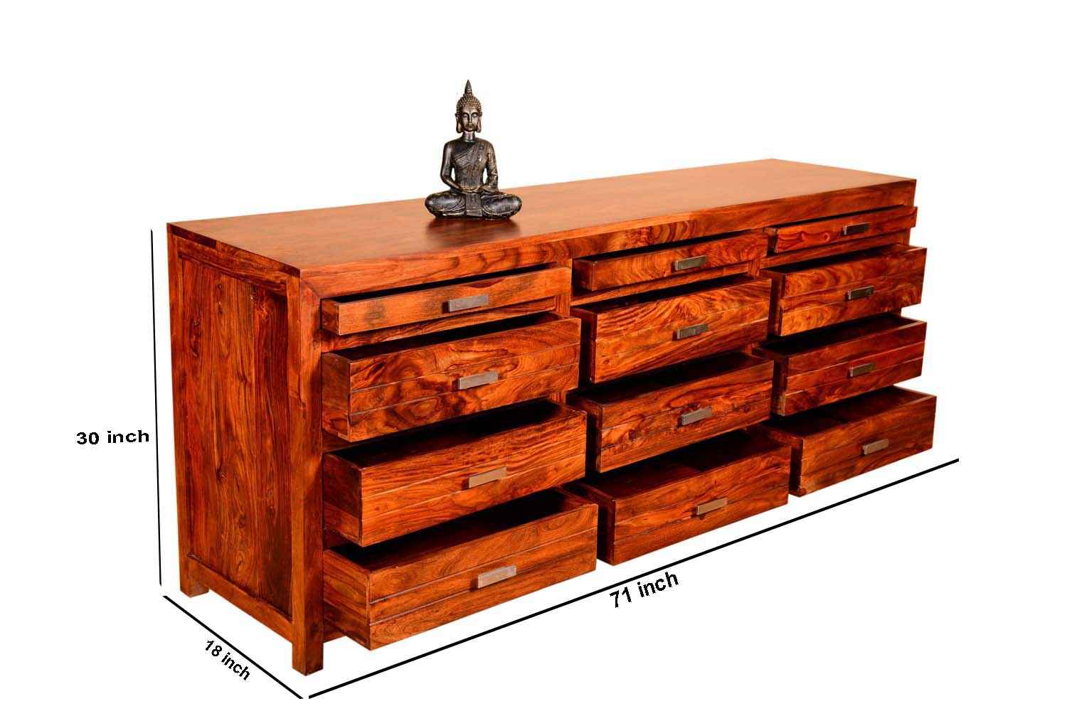 Beamy long chest of drawer is made by Mango wood with walnut and teak finish. This is five drawer set of chest of drawer. We have used walnut finishing in body and drawers are finished with teak that makes it amazing colorful look with more storage capacity and less space consuming that make your interior more attractive.You can buy bedroom furniture online from O my furniture.