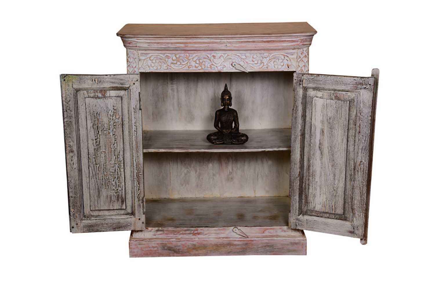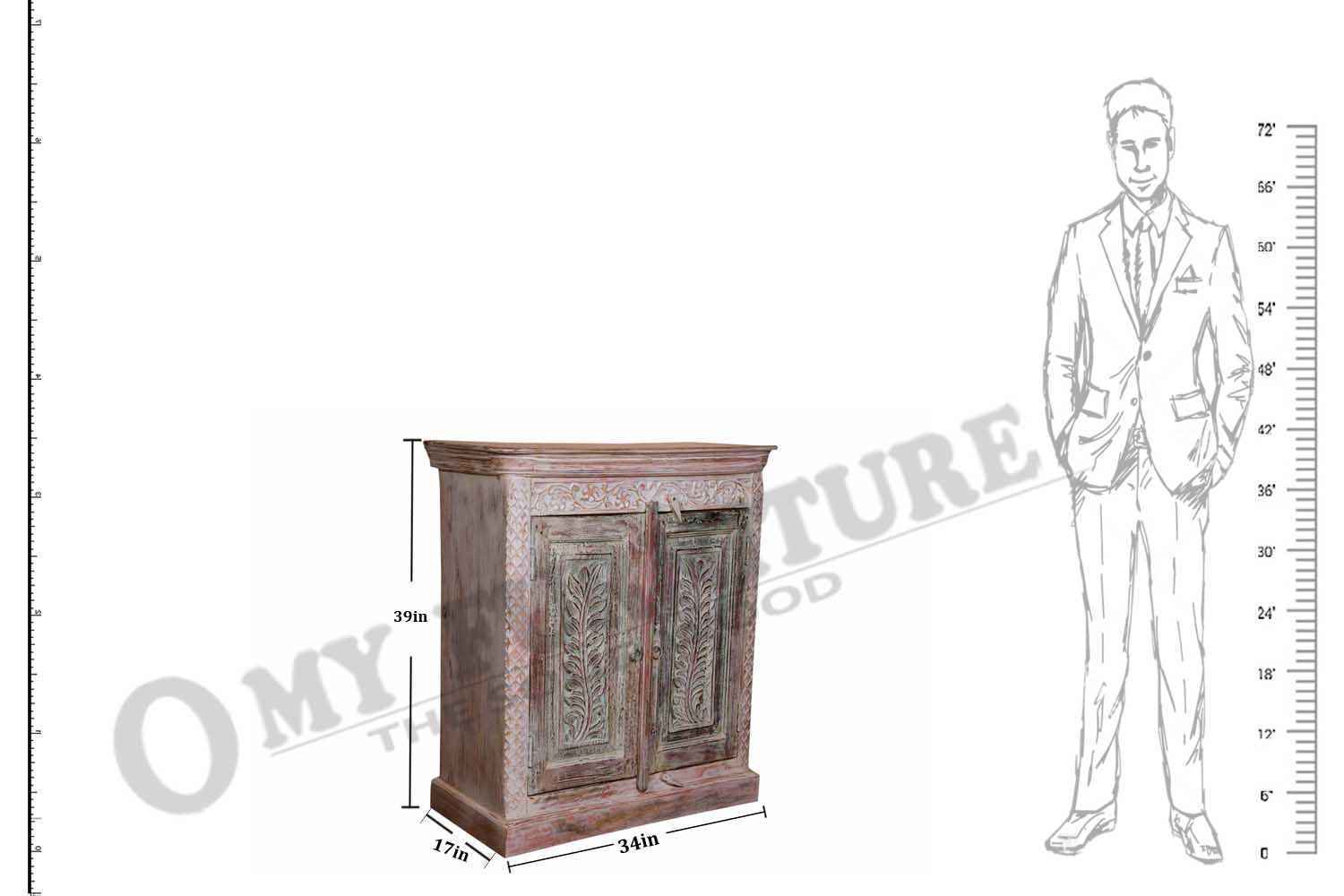 Chirmi Reclaimed one shelf wardrobe is made by Mango Wood with rustic antique finish.This is one door small almirah. We can use it for multipurpose. You can buy Solid wood furniture online from O my furniture.