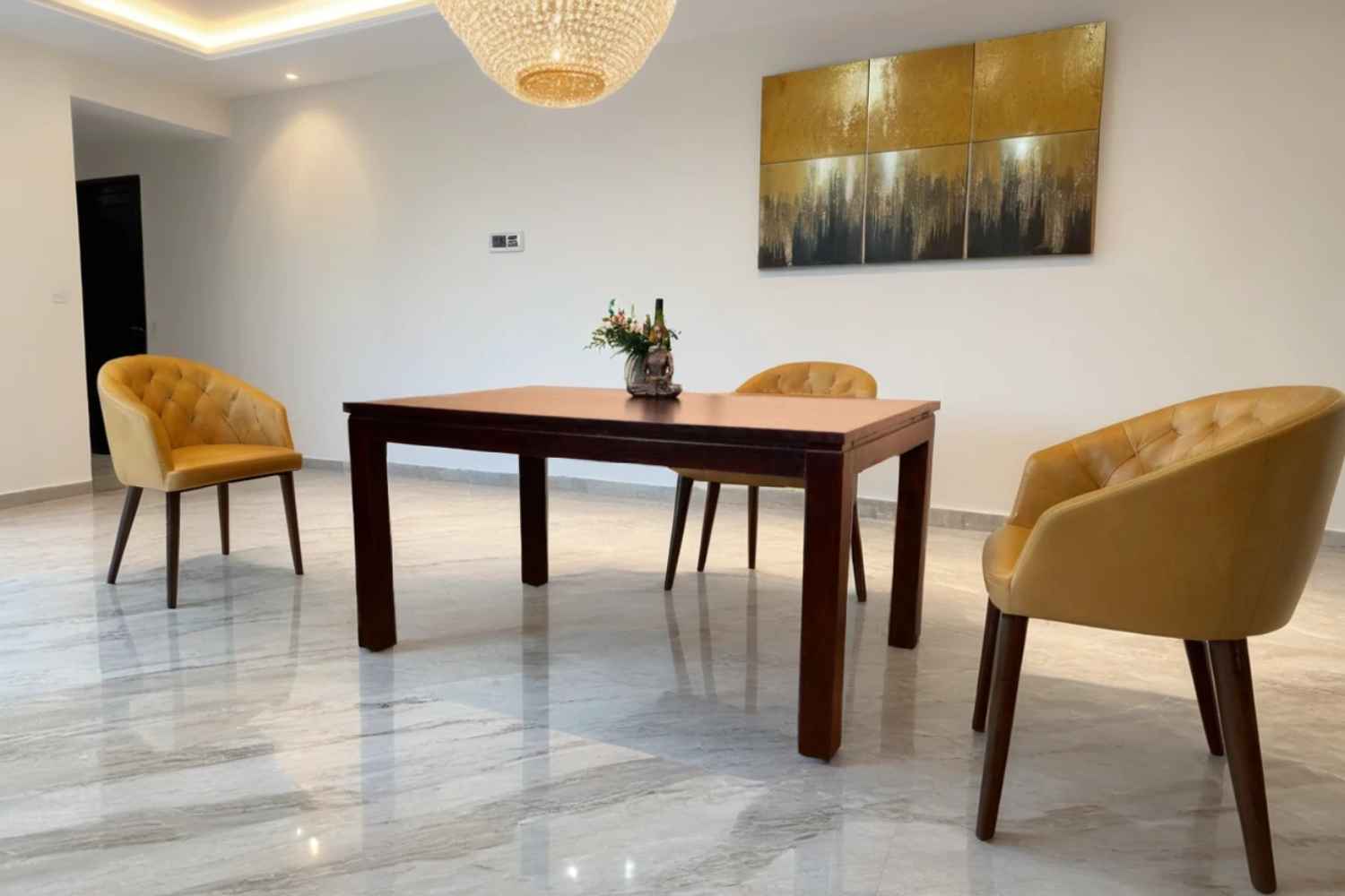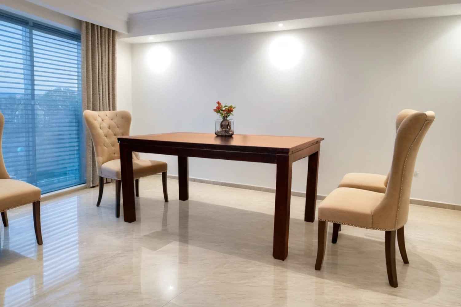 Sonu extension dining Table is made for your low space home compartment.It made by Sheesham (Rosewood) with teak finish.It is a table with two extension facility, when we need more space than you can use extension. This is four sitting without extension and eight sitting dining table with extension dining table. It is a very useful design for low space area.This dining table contain four Sheesham wood chair with teak finish.