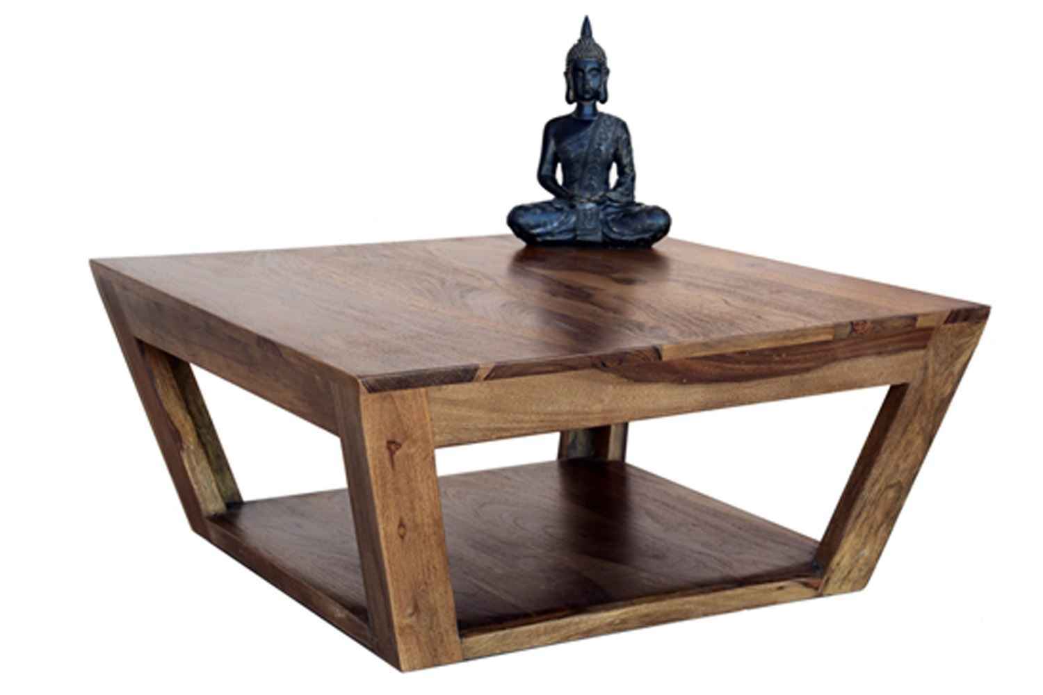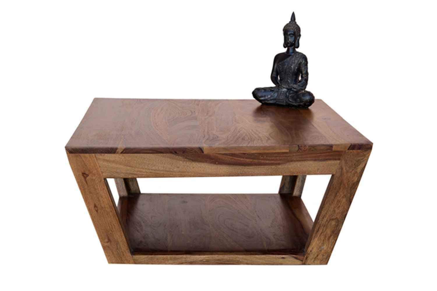Cube teak finish coffee table is made by sheesham wood with teak finishing. Coffee table shape is like cube with leg attached to top and bottom wooden frame.