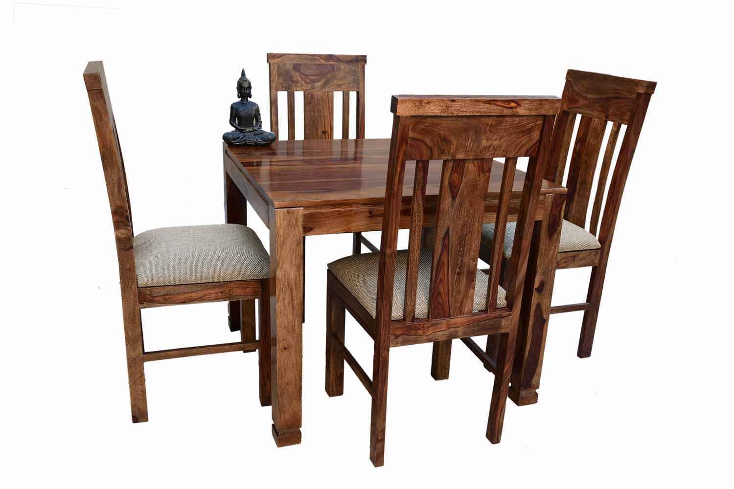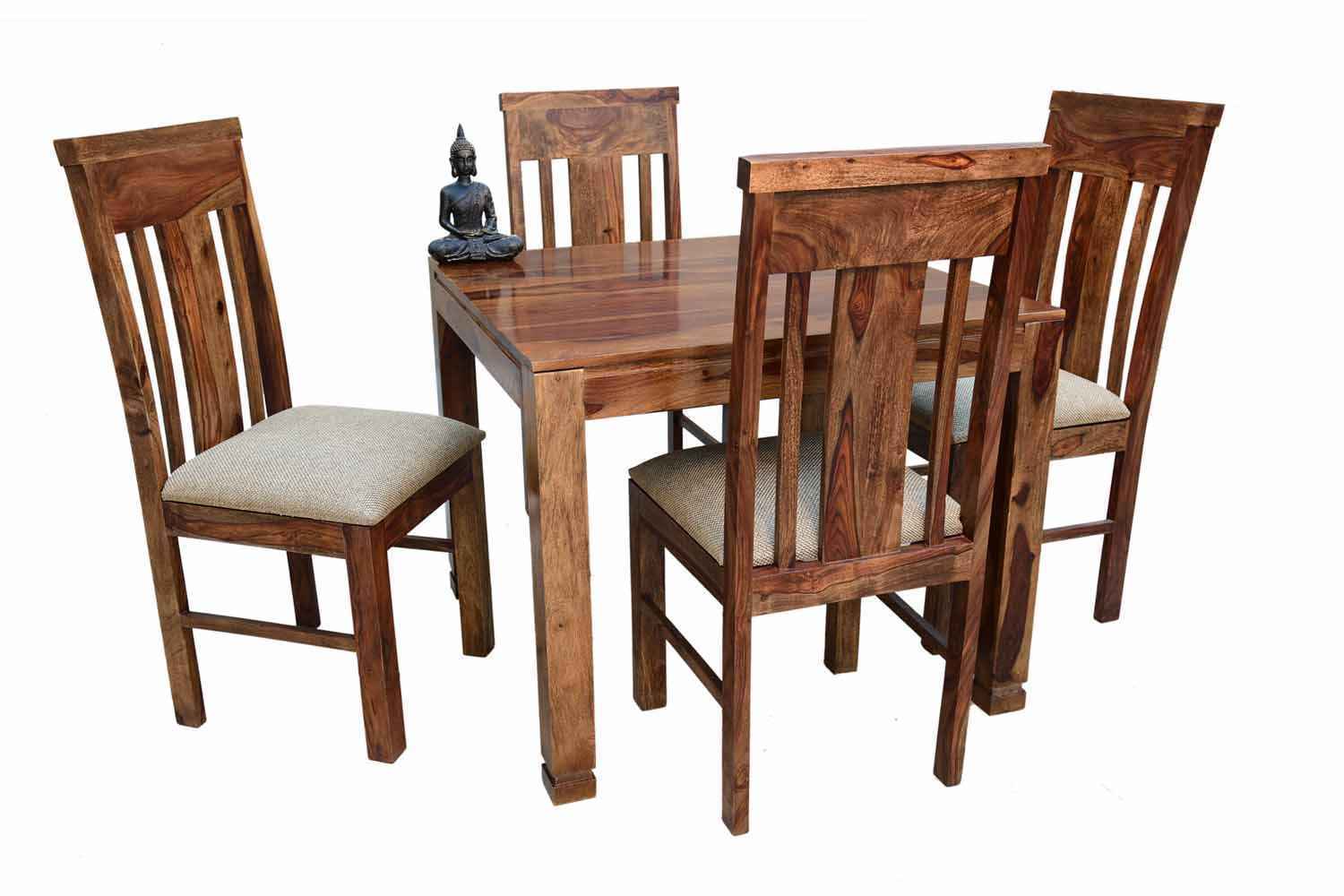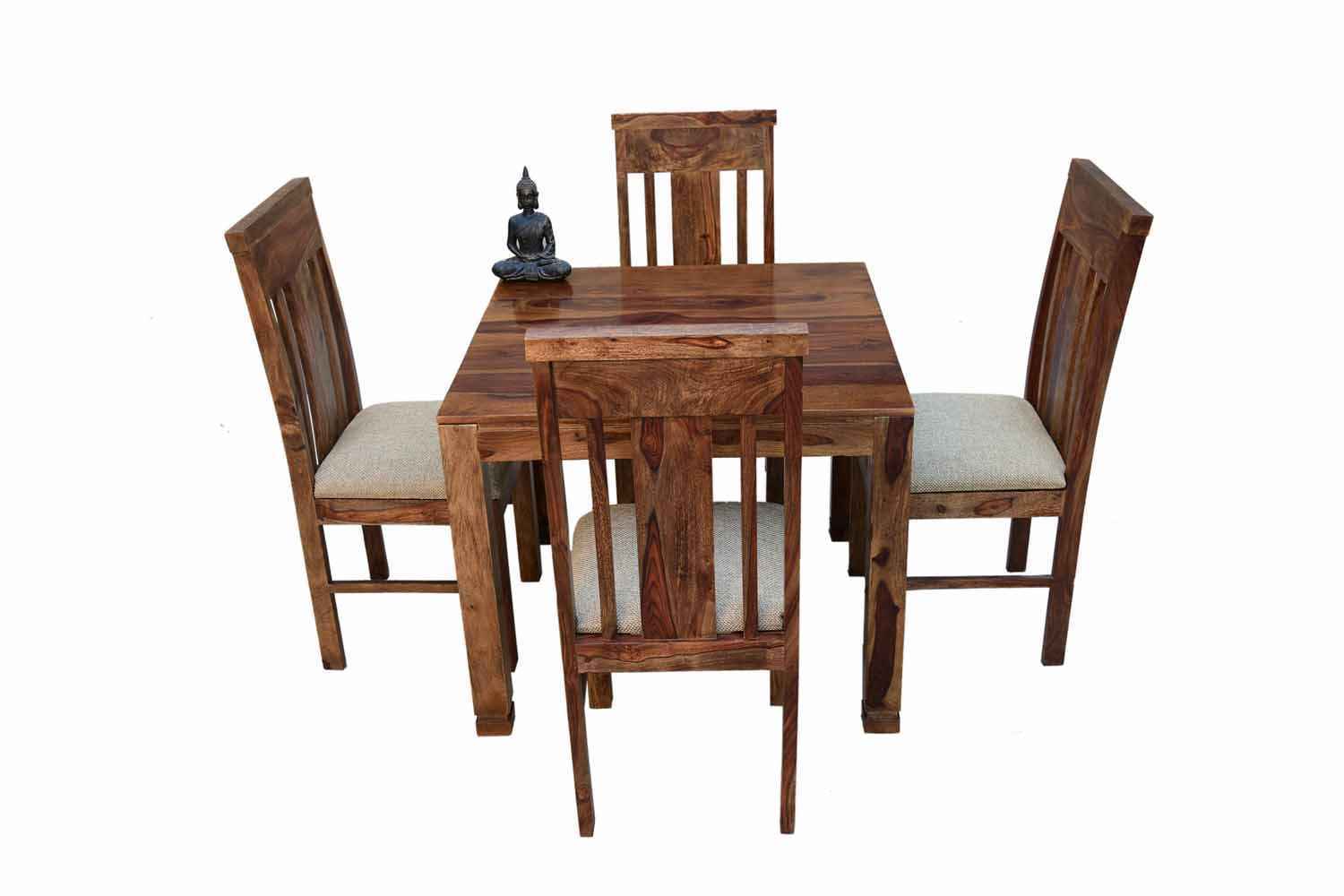 4 Seater Compact Square Dining Table set is made for small space area.It is a light weight and easy to move.It made by Sheesham (Rosewood) with Teak finish.It is a four seater dining table with simple square shape.This design mostly used in small space area as like as restaurants,hotels and small living areas.This dining table contain four Sheesham wood chair with teak finish.