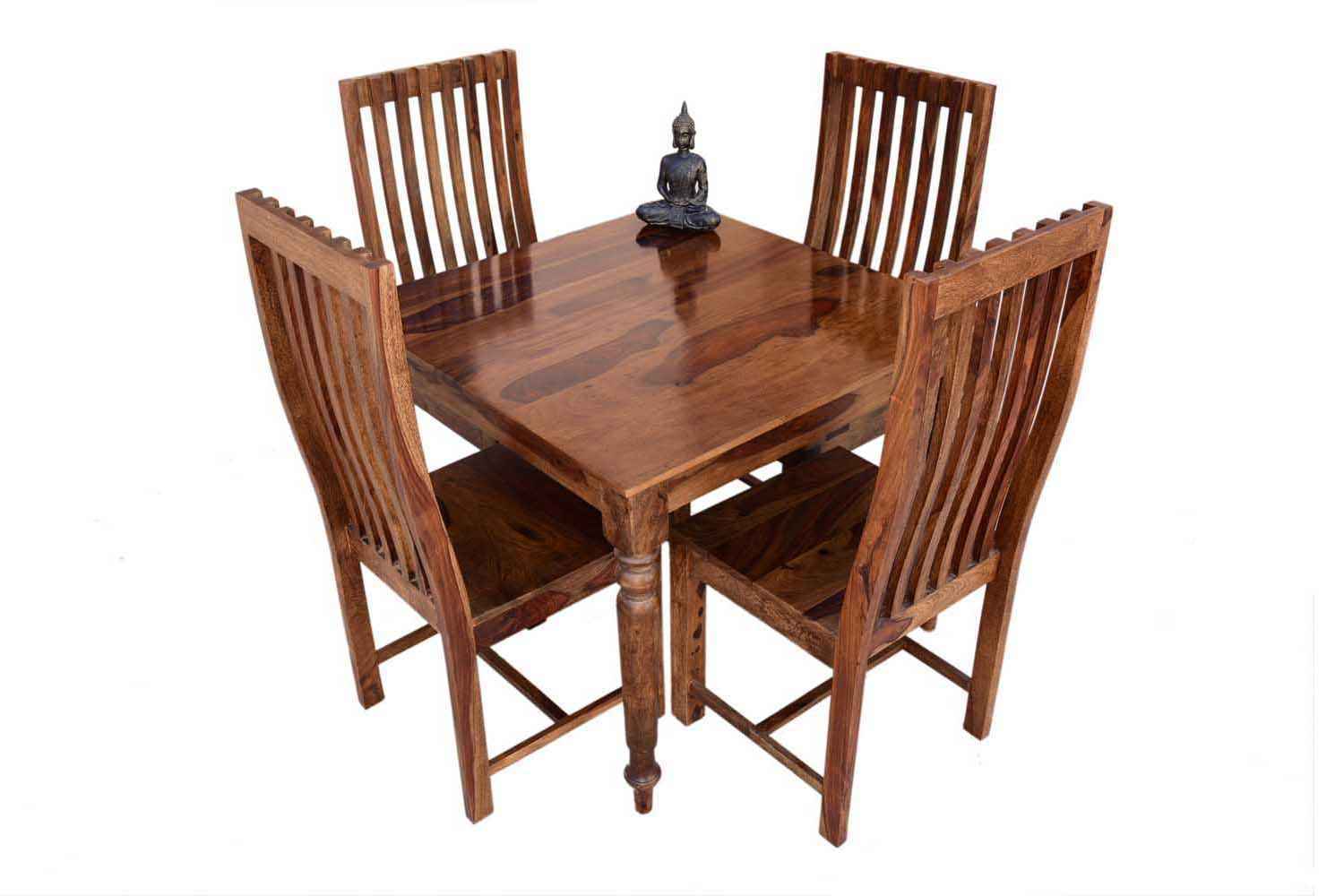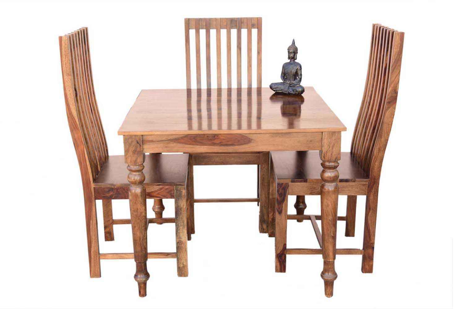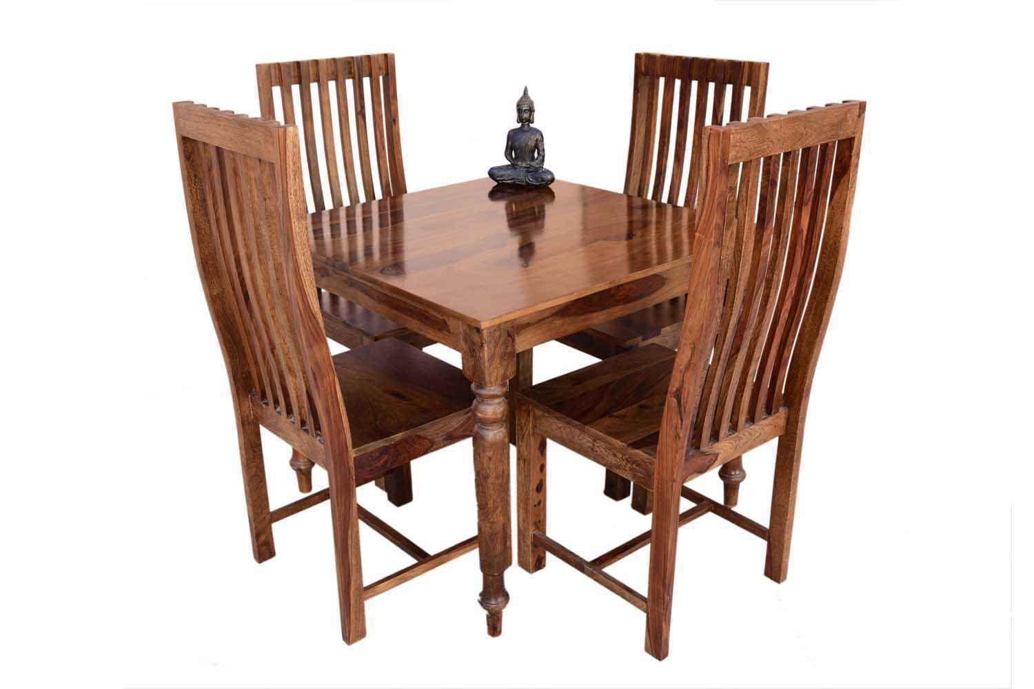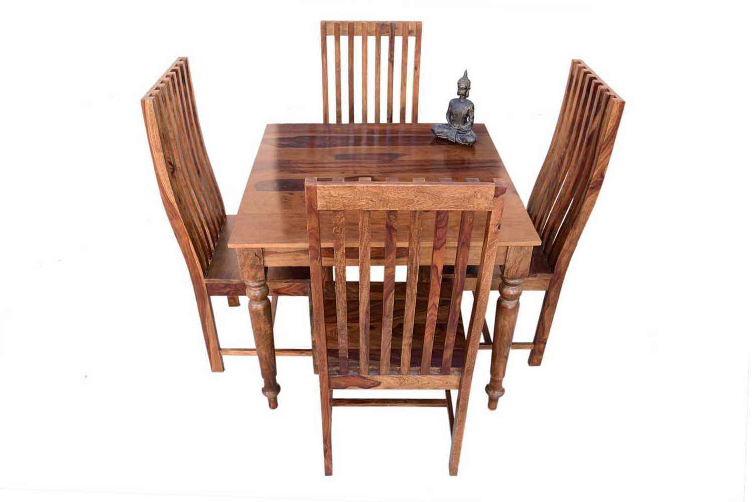 4 Seater Compact Square Dining Table set is made for small space area.It is a light weight and easy to move.It made by Sheesham (Rosewood) with Teak finish.It is a four seater dining table with simple square shape.This design mostly used in small space area as like as restaurants,hotels and small living areas.This dining table contain four Sheesham wood chair with teak finish.