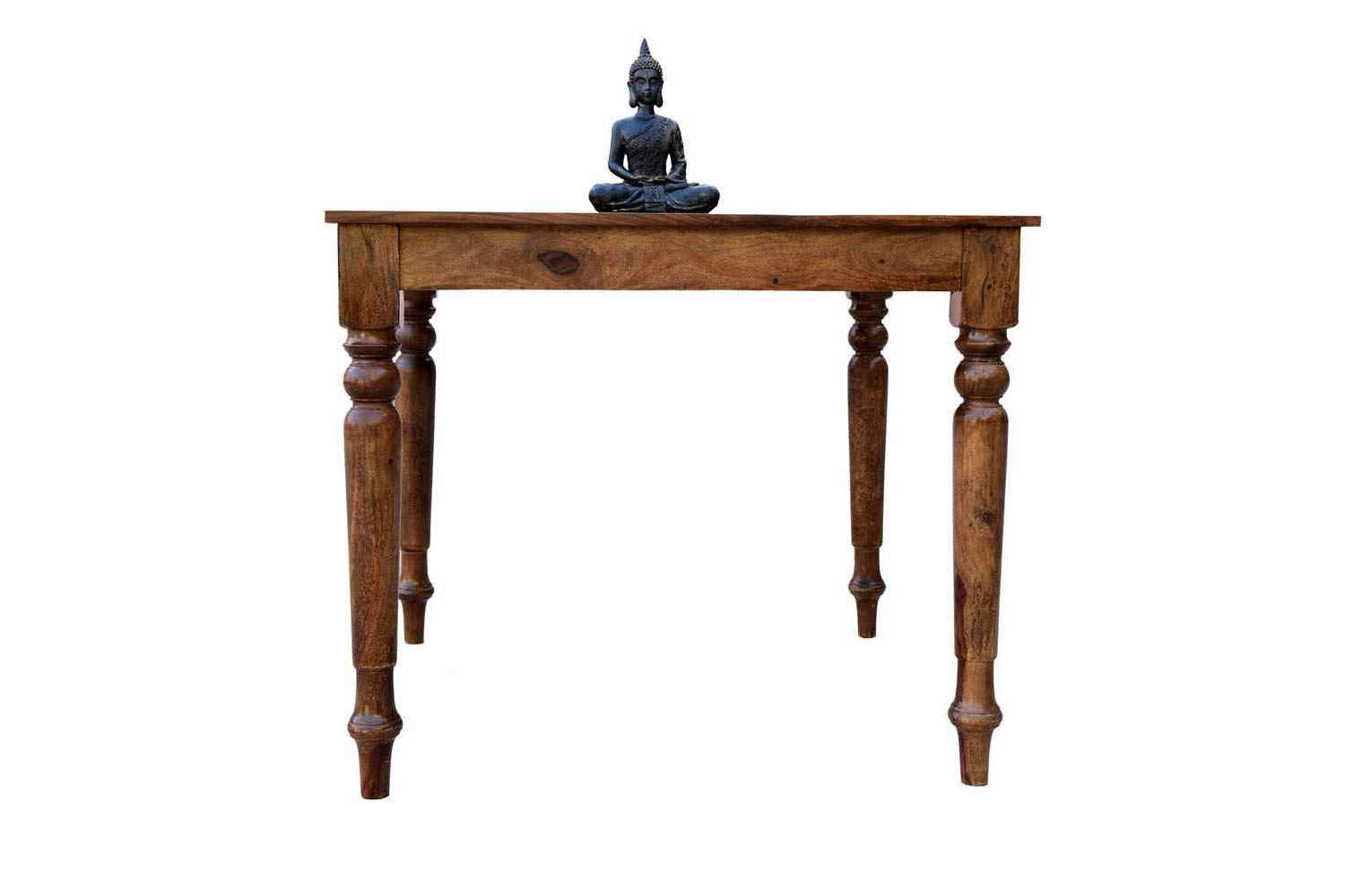 4 Seater Platinum square round finish dining table with zernal wooden chair is made by Sheesham wood with teak finish.It contains round legs with well carving.It is square shape four seating dining table.We follow vintage design to make this product.It’s available in knockdown facility that makes shifting easy.