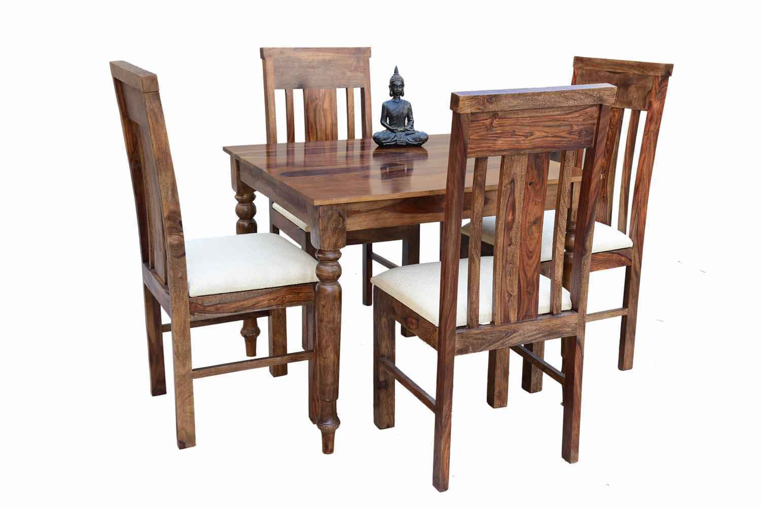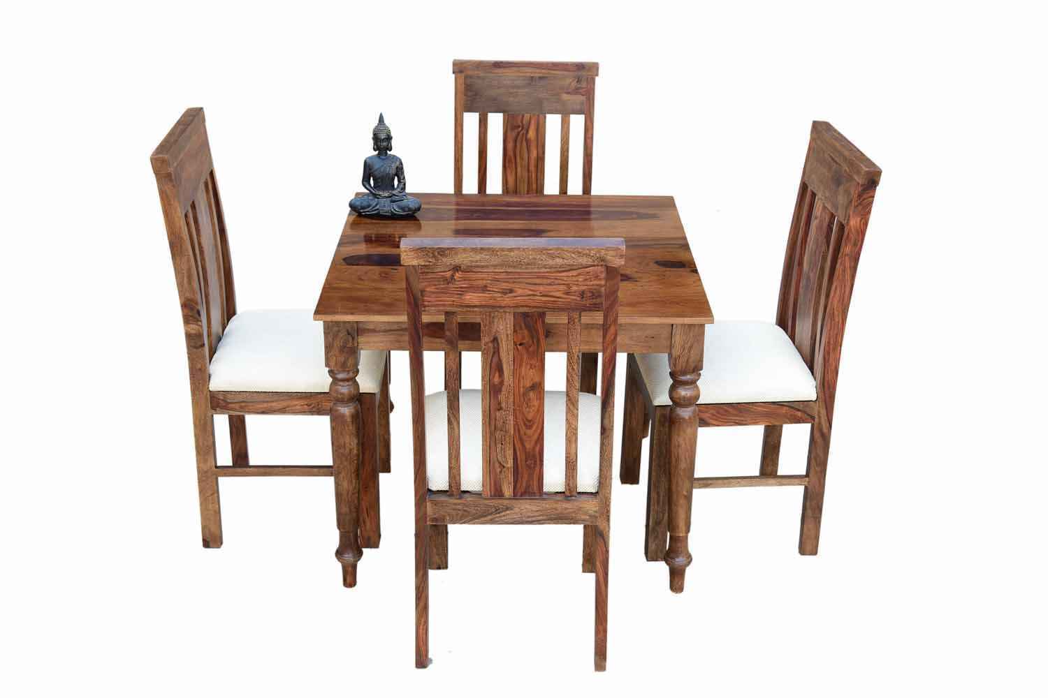 4 Seater Compact Square Dining Table set is made for small space area.It is a light weight and easy to move.It made by Sheesham (Rosewood) with Teak finish.It is a four seater dining table with simple square shape.This design mostly used in small space area as like as restaurants,hotels and small living areas.This dining table contain four Sheesham wood chair with teak finish.