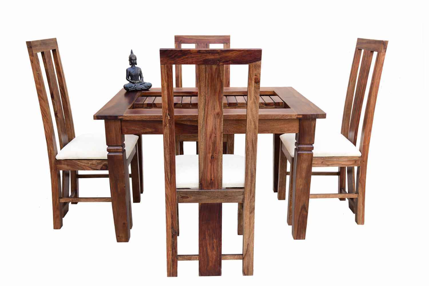 4 Seater Vintage Round Dining Table is made for your sweet home.It made by Sheesham (Rosewood) and iron capsule jail with Teak finish.It is a four seater dining table with round shape.This is vintage dining table with round carving leg.Its really inspire to vintage antique item.This dining table contain four Sheesham wood chair with teak finish. Sheesham wood furniture is always count in best quality furniture.