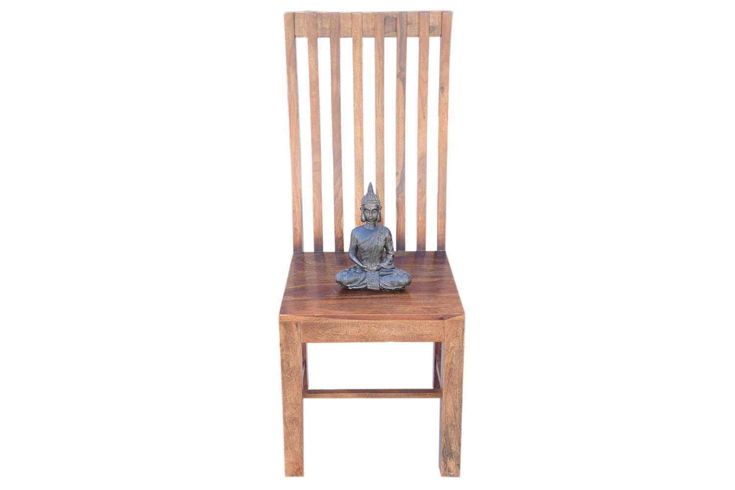 About Chair - Aloof wood & metal mix chair is made by Sheesham (Rosewood) with teak finish and iron jail.It wooden chair is a beautiful dining chair for your dining area.Its front two legs in round shape with oval carving and two legs in rectangle shape.Iron jail used in back portion that it be covered in two wooden frames and frame are in well carving. Sheesham wood furniture is best choice to purchase furniture online