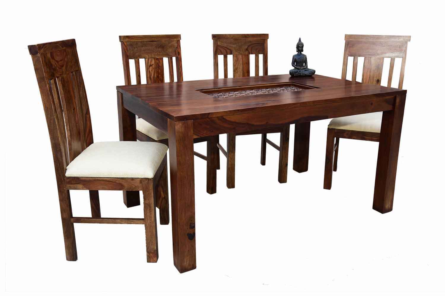 6 Seater Classic Dining Table Set Small size is made for your sweet home.It is made by Sheesham (Rosewood)with walnut finish. This dining table set is simple and good looking. This design mostly used in small space area.This dining table contains six Sheesham wood chair with teak finish. Sheesham wood furniture is always count in best quality furniture.