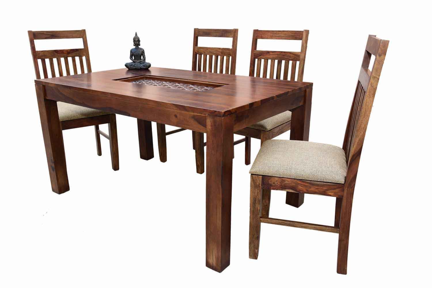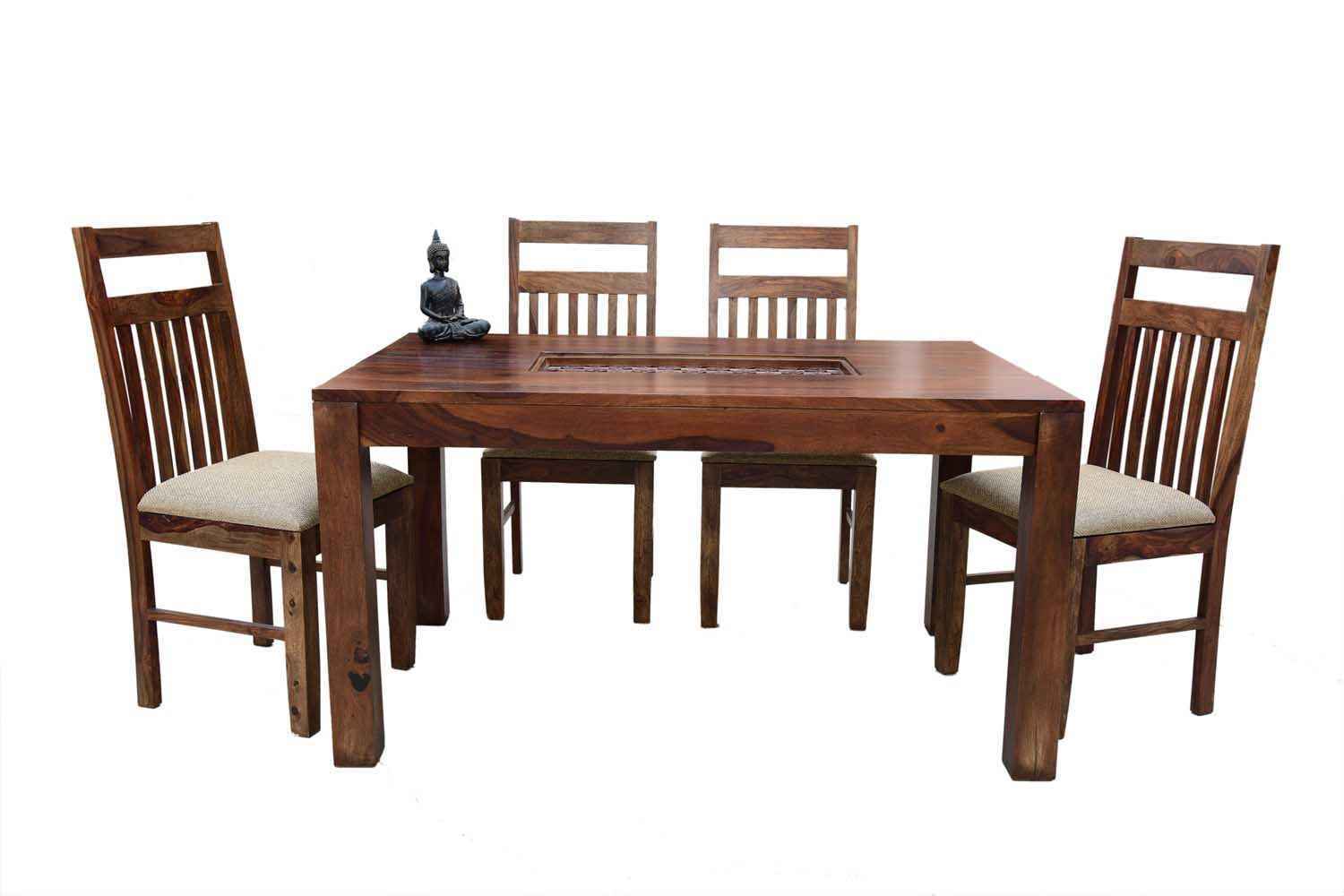 6-Seater pencil Dining table with Upholstery chair set is made by Sheesham(Rosewood) with teak finish.We gave pencil shape design table in leg portion that giving amazing look.It’s top and top support frame divided by a curved line.It is very stable Sheesham wooden dining table set and available in knockdown facility that makes shifting easy.