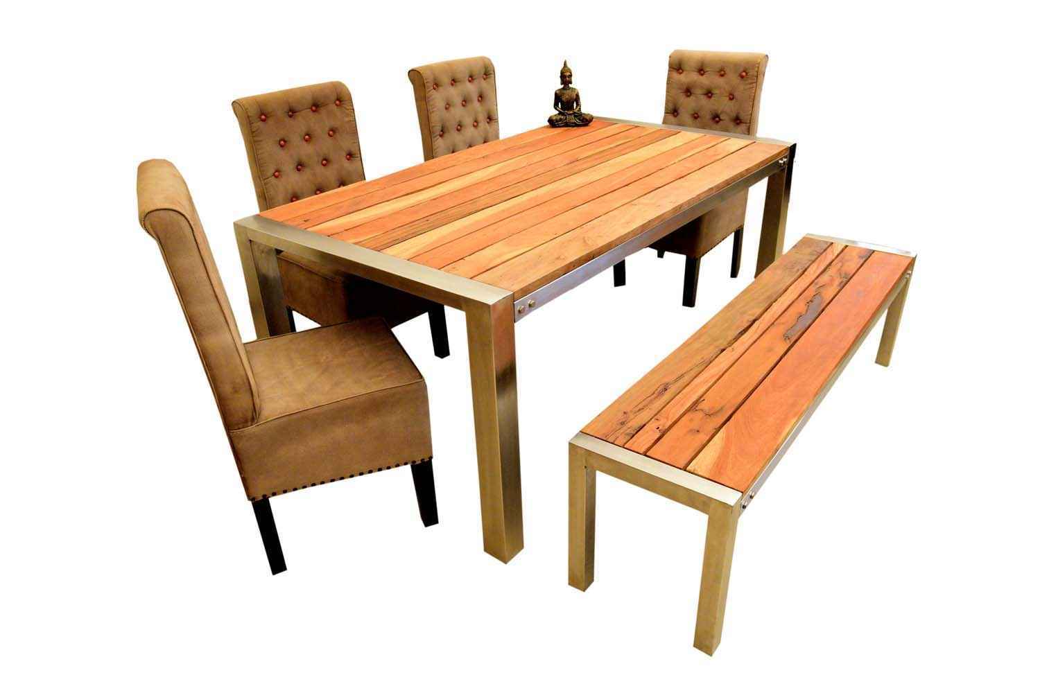 6 Seater Classic Dining Table Set Small size is made for your sweet home.It is made by Sheesham (Rosewood)with walnut finish. This dining table set is simple and good looking. This design mostly used in small space area.This dining table contains six Sheesham wood chair with teak finish. Sheesham wood furniture is always count in best quality furniture.