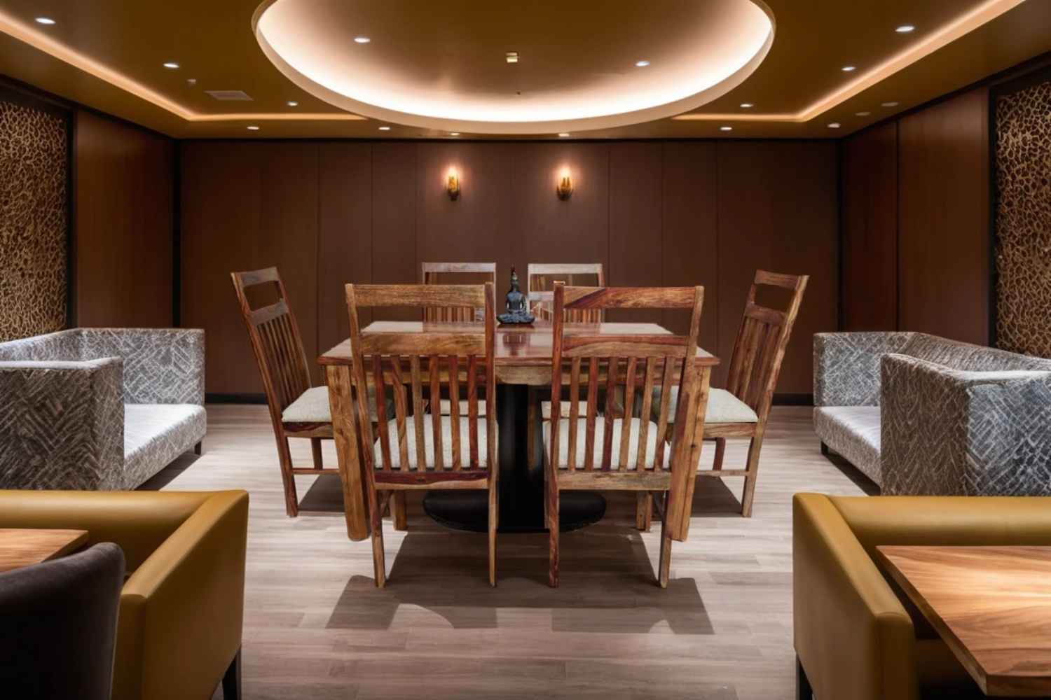 6 Seater SPL Pedestal Dining Table is made for commercial purpose use.It is made by old wood with walnut finish.We not have tampered the natural cracks.It is eight sitting dining table with rough finish top and pedestal leg that’s giving a unique look.It mostly use in big dining area.This Dining table contains six Sheesham wood with walnut finish.