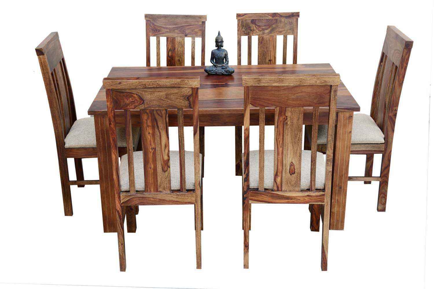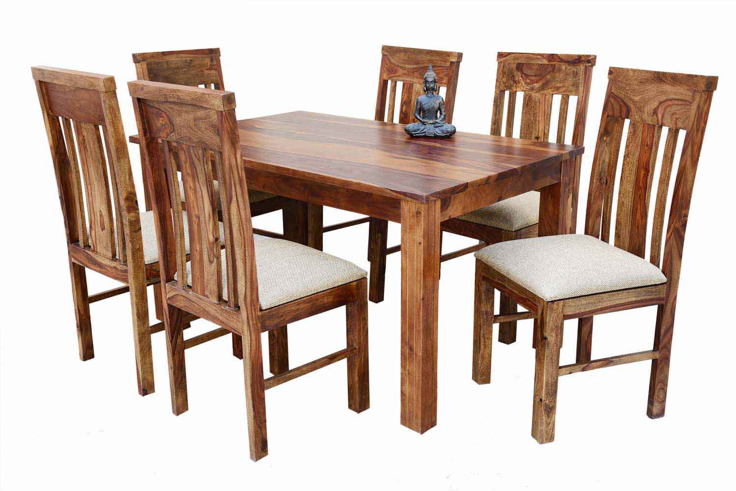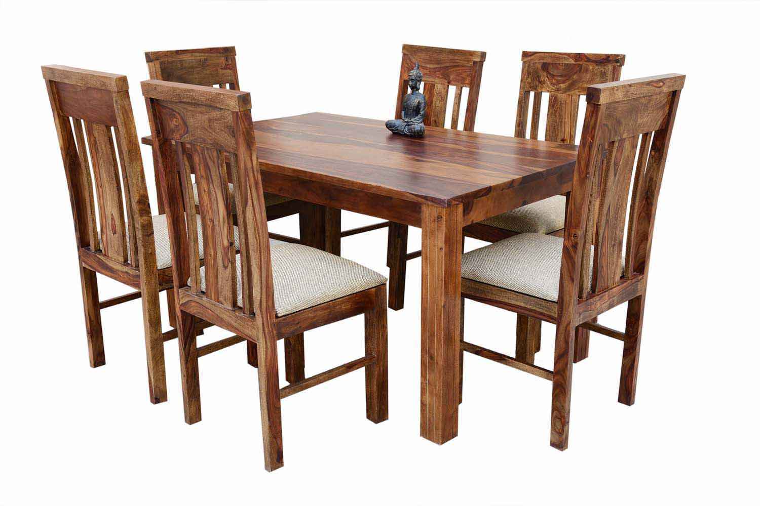 6 Seater Classic Dining Table Set Small size is made for your sweet home.It is made by Sheesham (Rosewood)with walnut finish. This dining table set is simple and good looking. This design mostly used in small space area.This dining table contains six Sheesham wood chair with teak finish. Sheesham wood furniture is always count in best quality furniture.