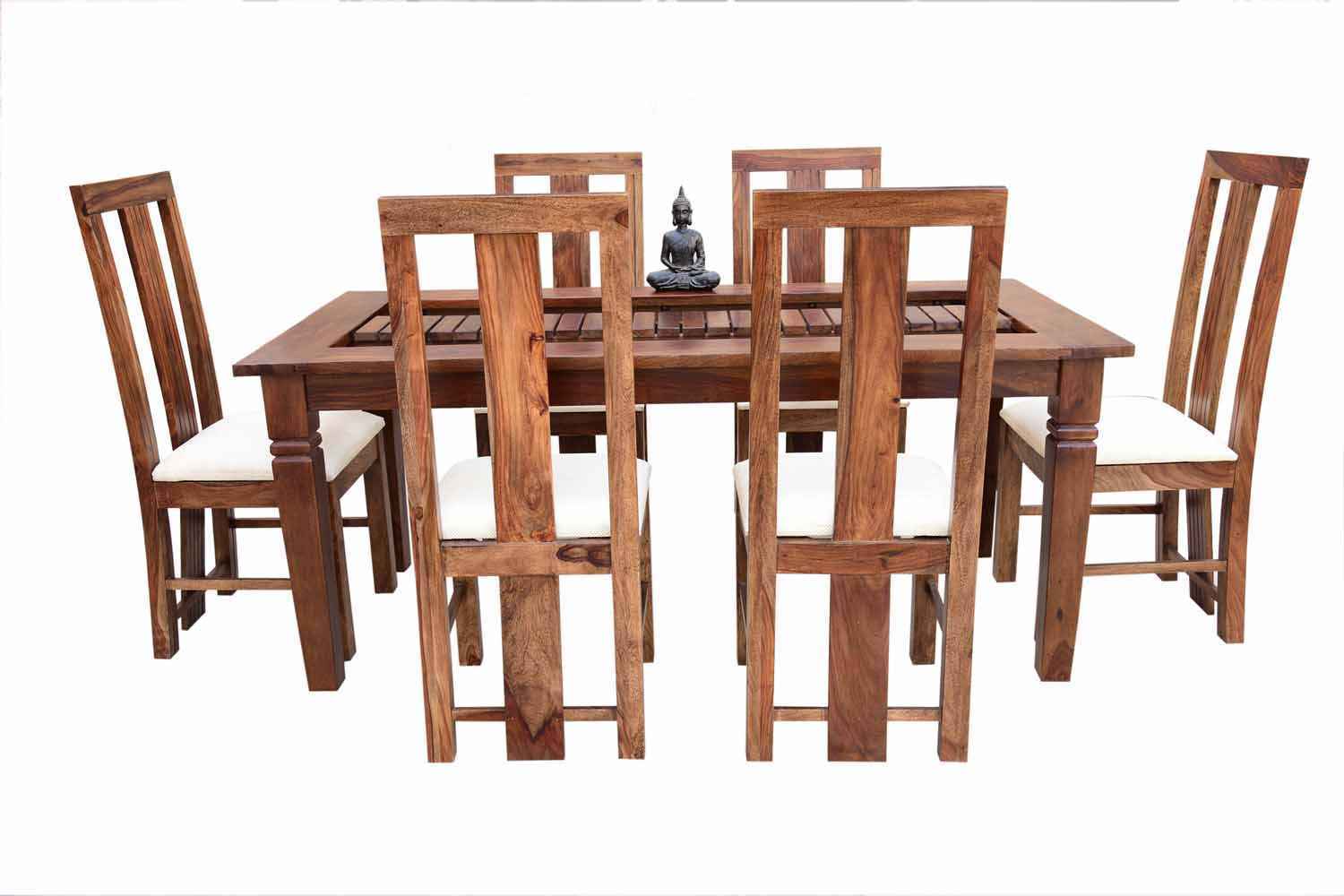 6 Seater Classic Dining Table  Set Small size is made for your sweet home.It is made by Sheesham (Rosewood)with walnut finish. This dining table set is simple and good looking. This design mostly used in small space area.This dining table contains six Sheesham wood chair with teak finish. Sheesham wood furniture is always count in best quality furniture.