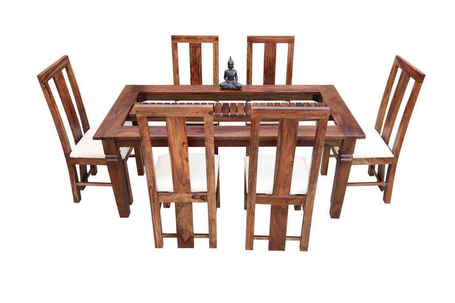 6 Seater Classic Dining Table Set is made for your sweet home.It made by Sheesham (Rosewood) with teak finish.It is a simple and good looking design.This design mostly used in small space area.This dining table contains six sheesham wood with teak finish.