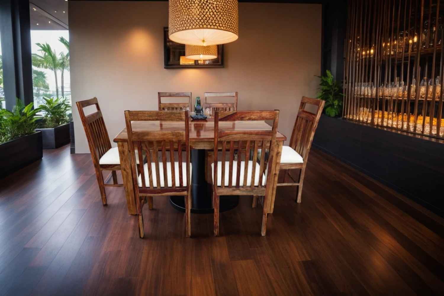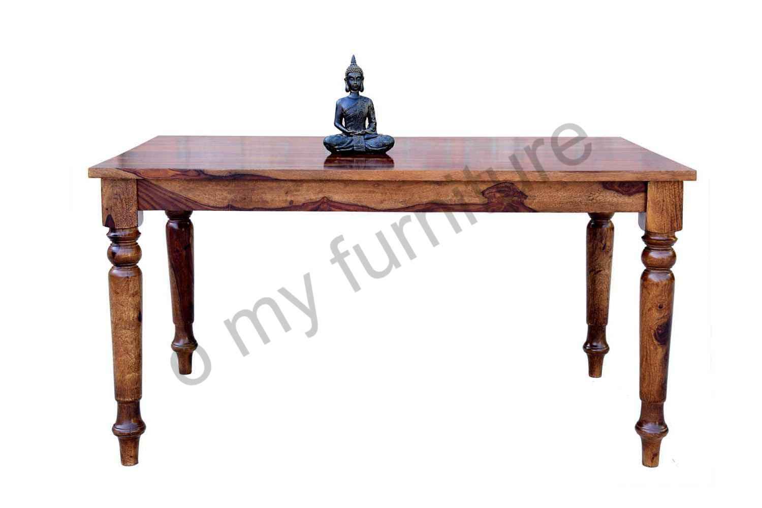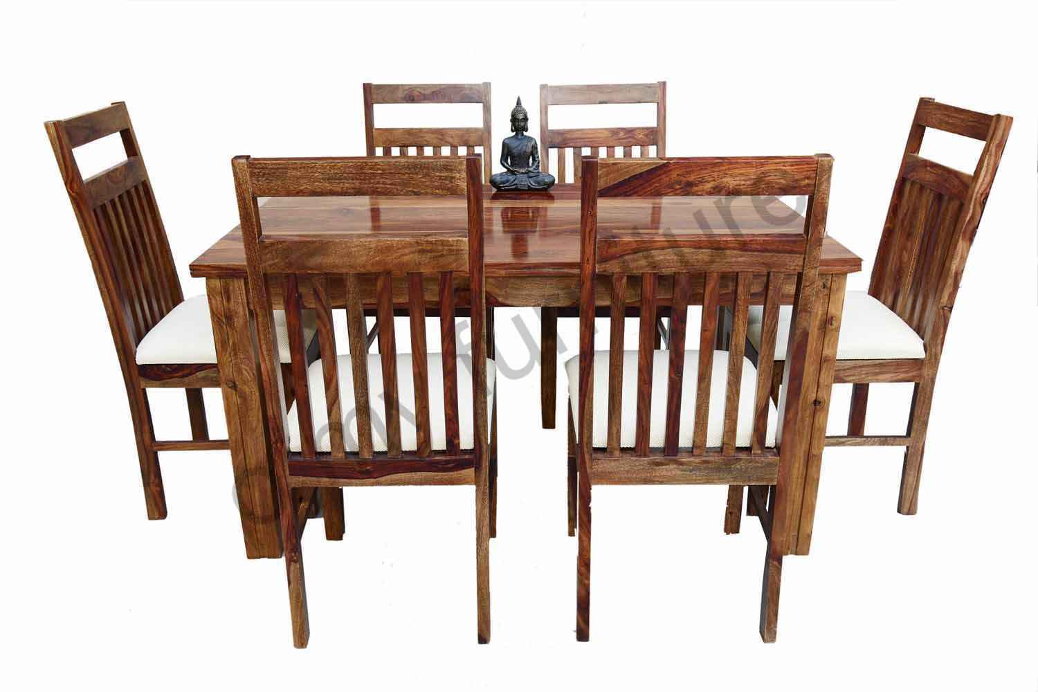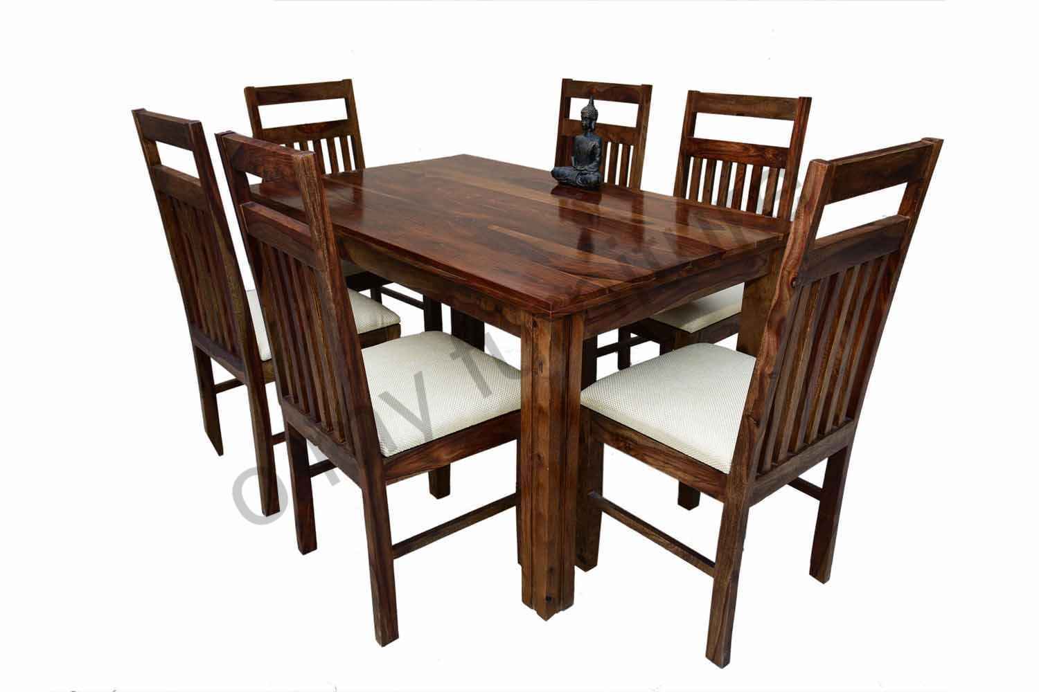 6 Seater Classic Dining Table Set Small size is made for your sweet home.It is made by Sheesham (Rosewood)with walnut finish. This dining table set is simple and good looking. This design mostly used in small space area.This dining table contains six Sheesham wood chair with teak finish. Sheesham wood furniture is always count in best quality furniture.