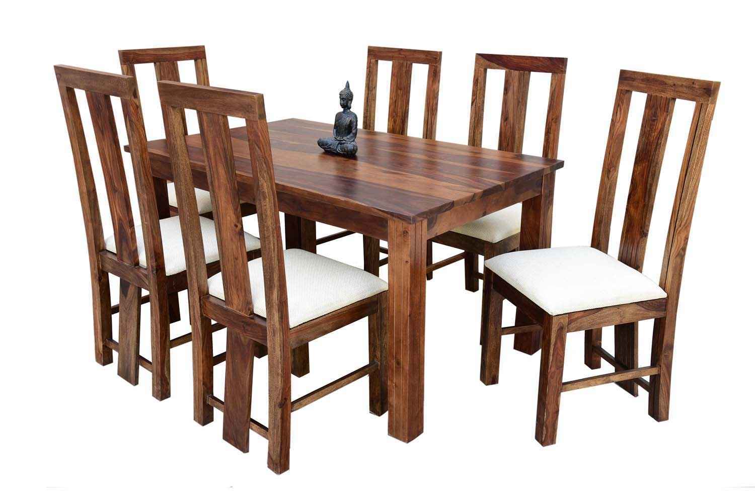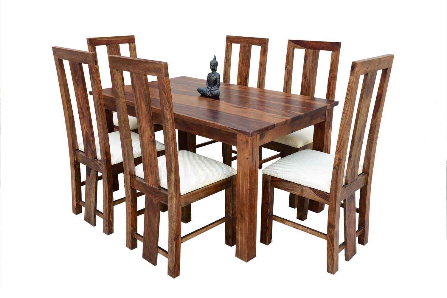 6 Seater Classic Dining Table Set Small size is made for your sweet home.It is made by Sheesham (Rosewood)with walnut finish. This dining table set is simple and good looking. This design mostly used in small space area.This dining table contains six Sheesham wood chair with teak finish. Sheesham wood furniture is always count in best quality furniture.