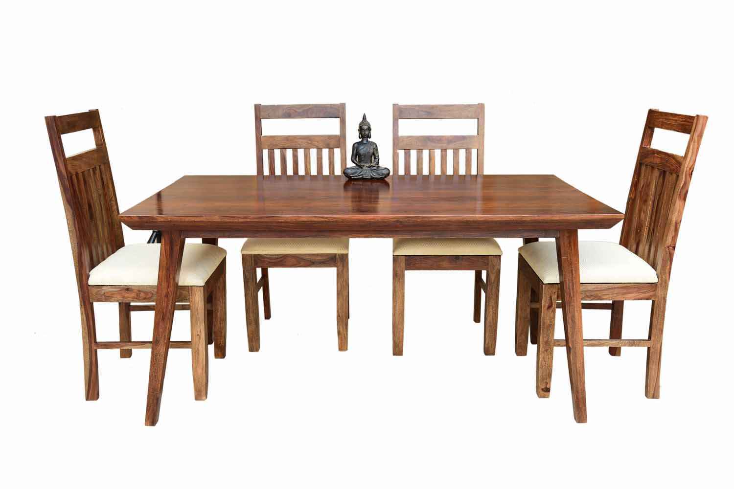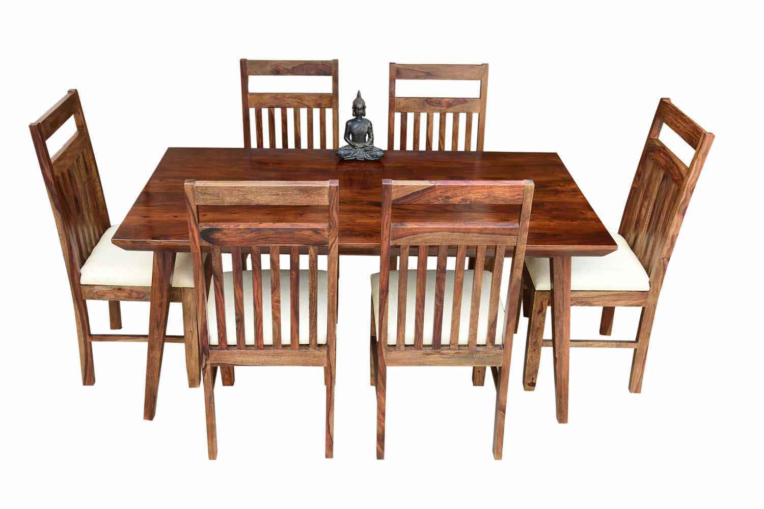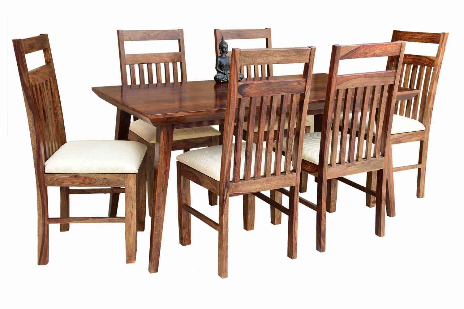 6 Seater Classic Dining Table Set Small size is made for your sweet home.It is made by Sheesham (Rosewood)with walnut finish. This dining table set is simple and good looking. This design mostly used in small space area.This dining table contains six Sheesham wood chair with teak finish. Sheesham wood furniture is always count in best quality furniture.