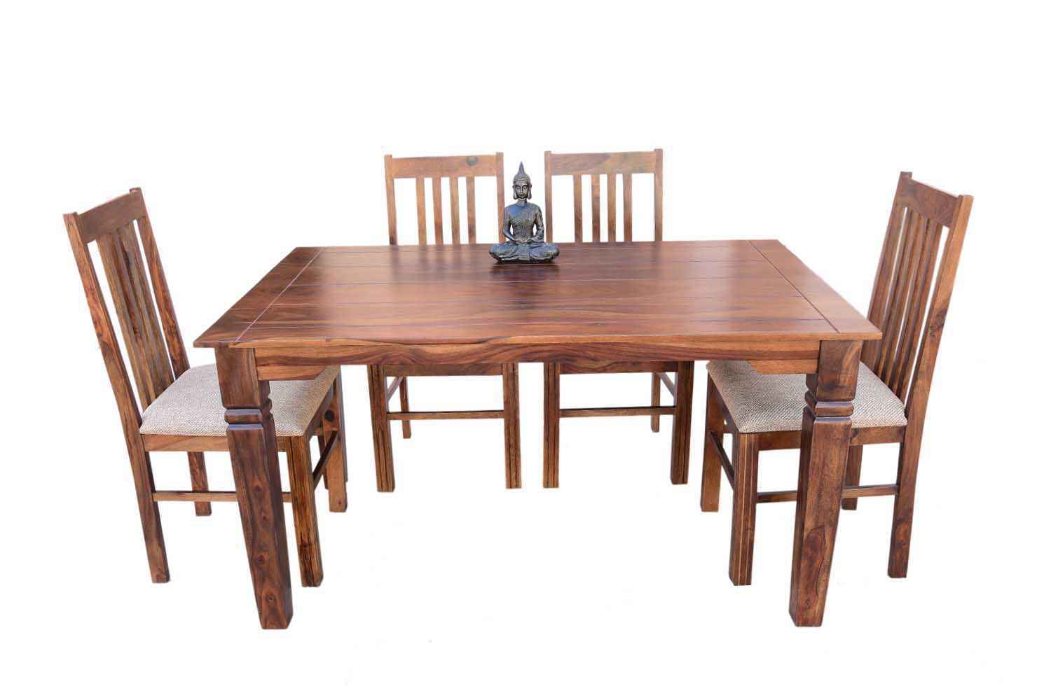 6-Seater pencil Dining table with Upholstery chair set is made by Sheesham(Rosewood) with teak finish.We gave pencil shape design table in leg portion that giving amazing look.It’s top and top support frame divided by a curved line.It is very stable Sheesham wooden dining table set and available in knockdown facility that makes shifting easy.