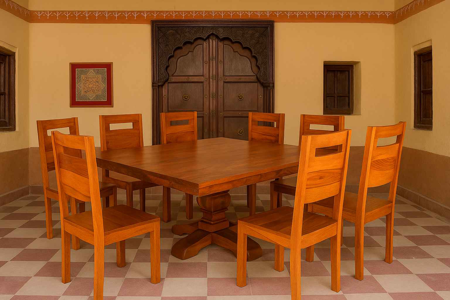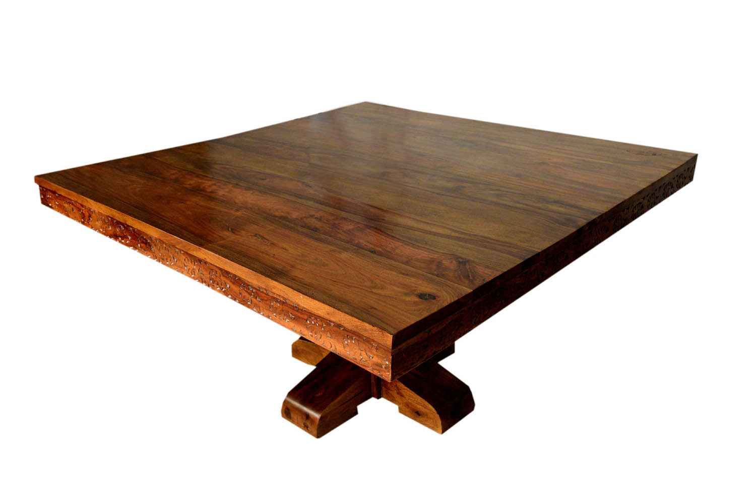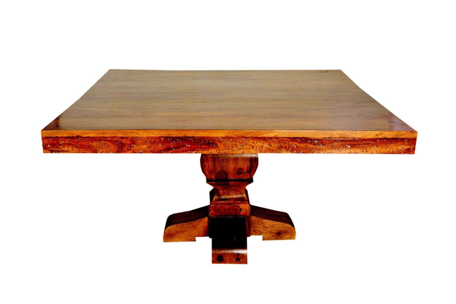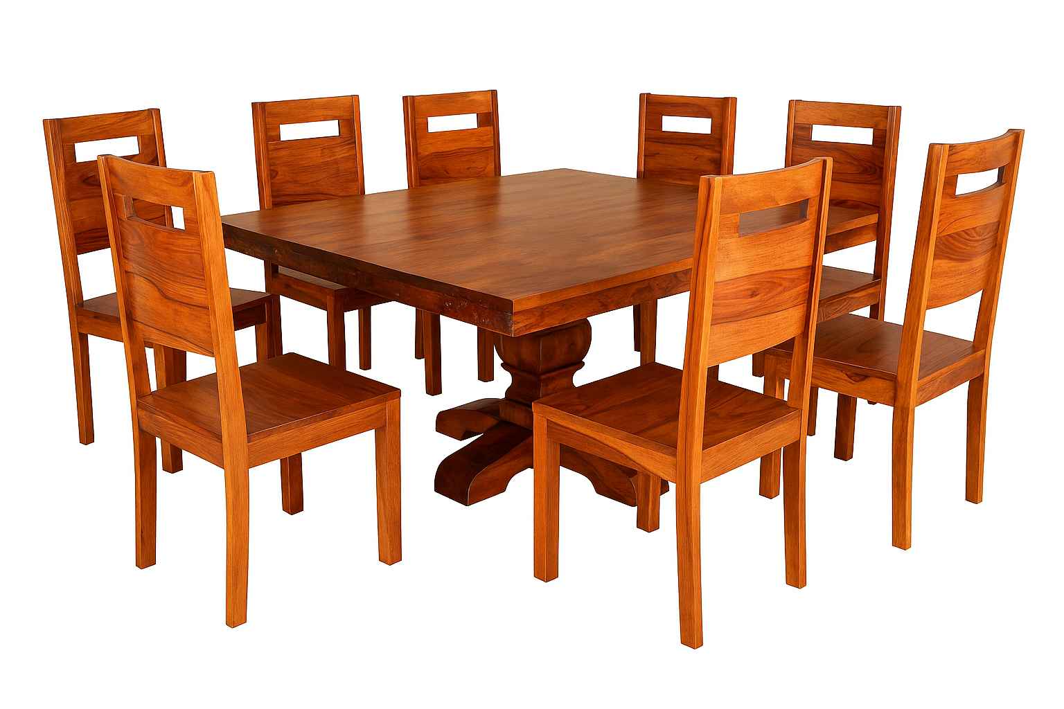 4 seater swingo dining table with Elpho brown upholstery chair set is made by Sheesham (Rosewood) with teak finish.It is four seater dining table.Carving work separates its design from others.Its top design is very unique.We gave rectangle shape hole in both side of top carving and all top area covered by transparent glass.It is available in knockdown facility that makes easy shifting. (WE ARE NOT PROVIDING GLASS WITH THIS DINING TABLE)